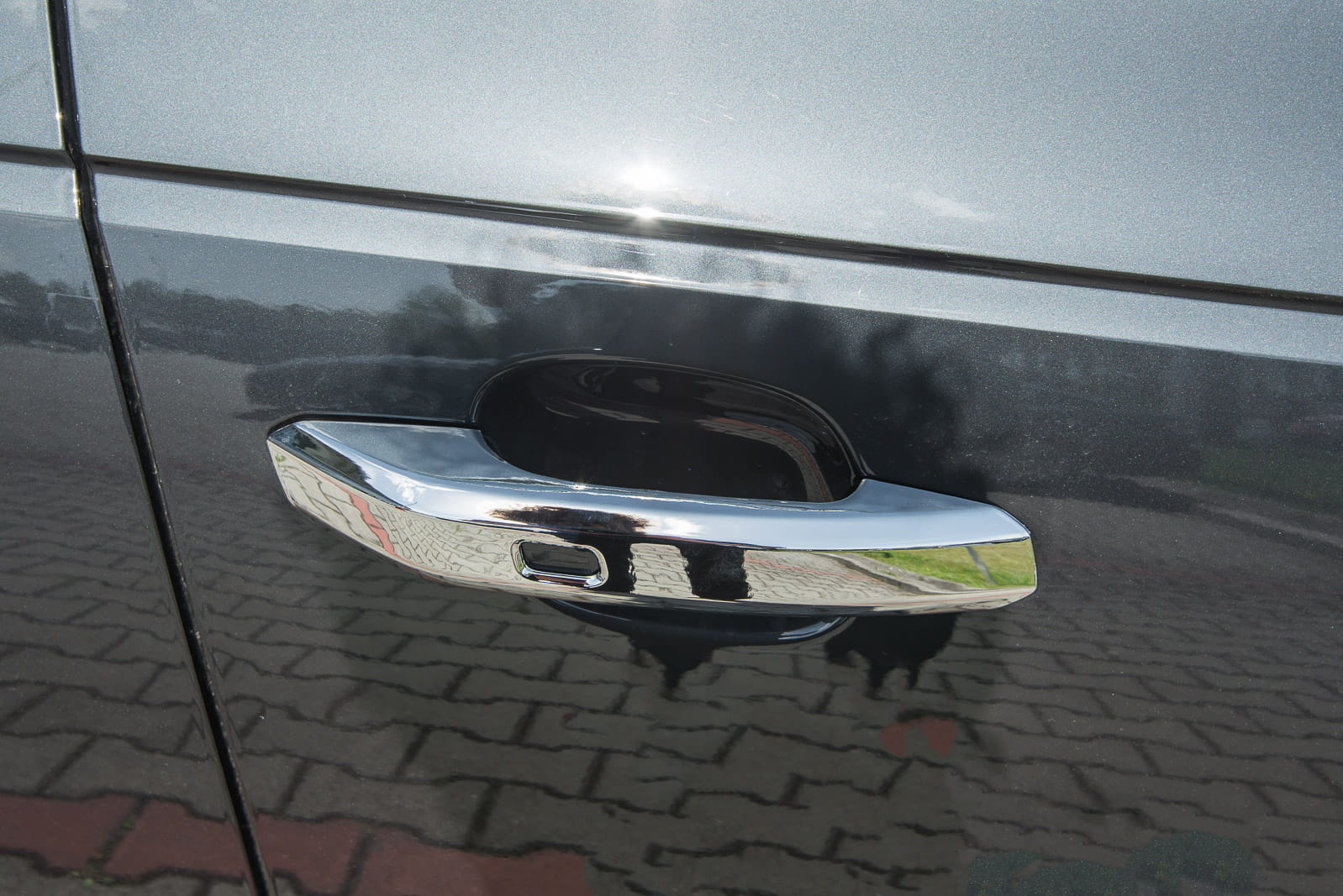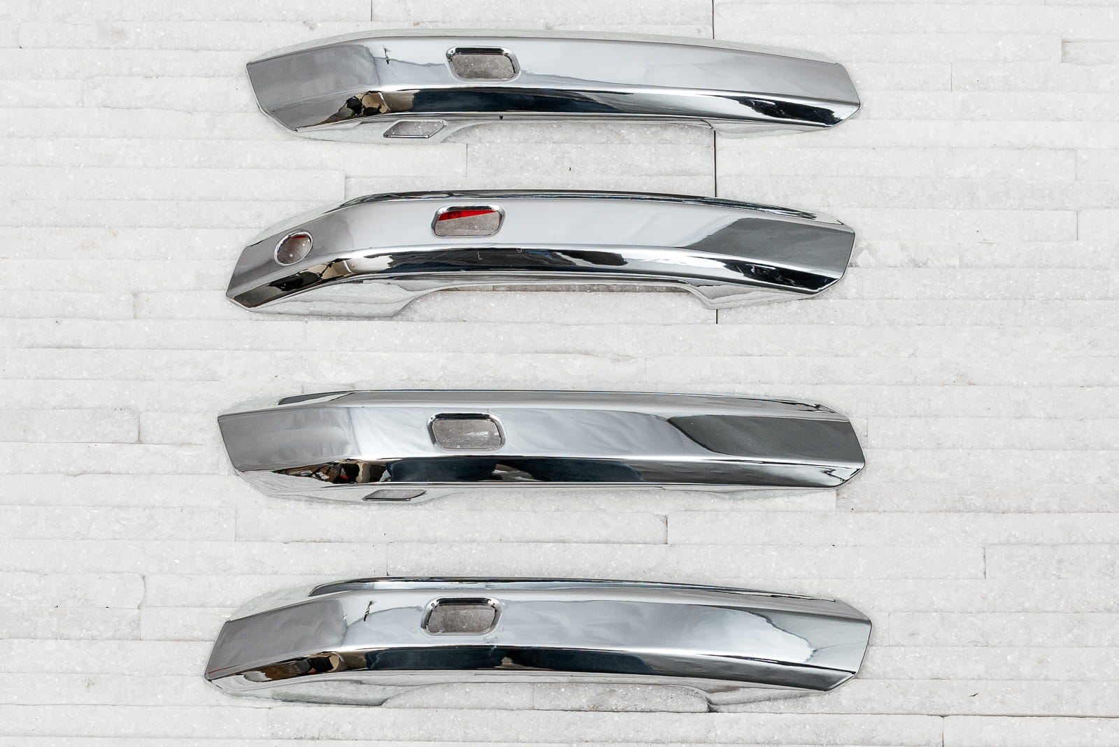 Chromowane nakładki na klamki zaprojektowane dla Audi A5 (F5) 2017-2019 (wersja przed faceliftingiem, z sensorem). Dekoracyjne, chromowane nakładki na klamki to dodatek, który uzupełnia stylizację samochodu nutą sportowej elegancji. Idealnie dopasowane do linii samochodu, odmieniają wizerunek klamek modelu AUDI A5, czyniąc z nich prawdziwą ozdobę samochodu. Produkt wykonany z wysokiej jakości chromowanego tworzywa ABS.