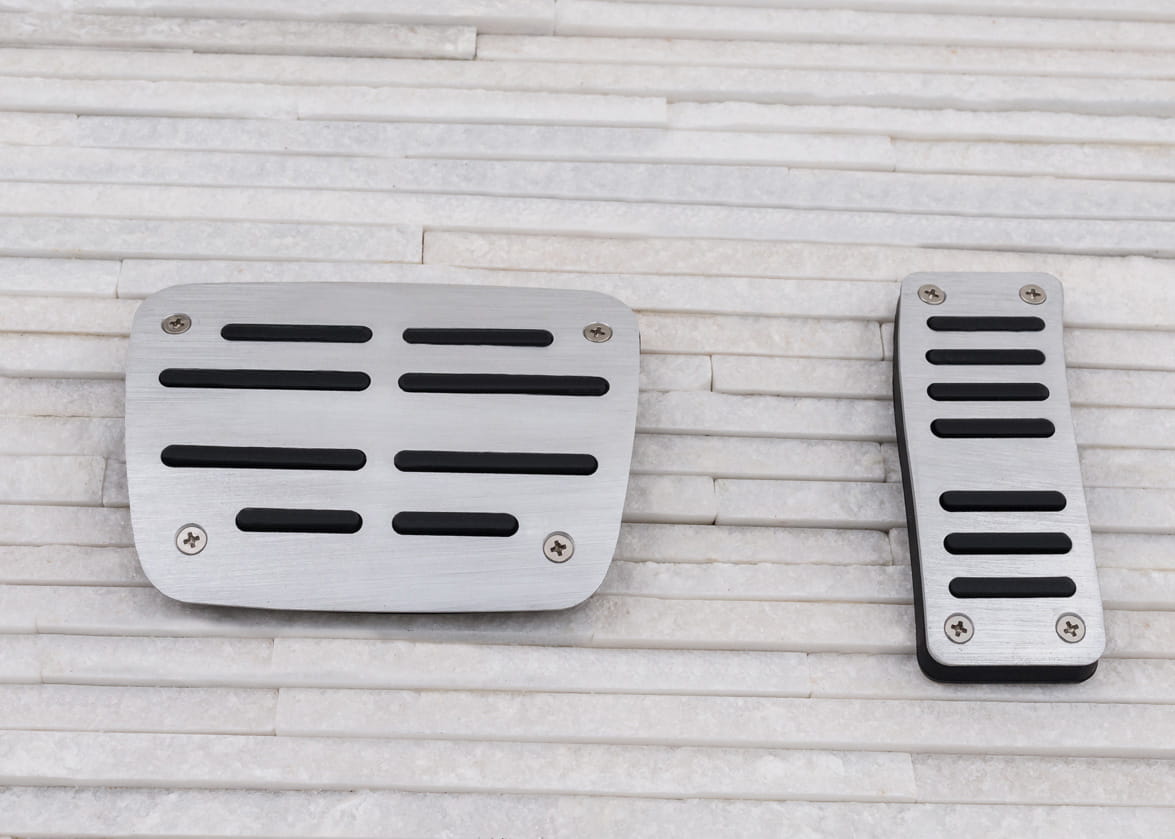 Komplet nakładek zaprojektowany został tak, aby zwiększyć komfort kierowcy podczas prowadzenia samochodu. Zintegrowane, gumowe elementy zapobiegają ślizganiu się podeszwy, co umożliwia pewniejsze operowanie pedałami podczas jazdy. Zastosowanie nakładek poprawia kontrolę nad autem w ekstremalnych sytuacjach, dzięki czemu mogą one mieć niebagatelny wpływ na bezpieczeństwo kierowcy i pasażerów. Nakładki wykonane zostały z materiałów wysokiej jakości, dzięki czemu są nie tylko trwałe, ale także prezentują się znakomicie przez długi czas. Dzięki zastosowaniu szczotkowanego aluminium, zestaw wspaniale komponuje się z innymi elementami wykończenia, podkreślając tym samym elegancki, dynamiczny charakter samochodu. Nakładki montuje się przy pomocy dołączonych wkrętów na fabryczne pedały. Zalecamy montaż profesjonalny. Zapraszamy do zakupu!