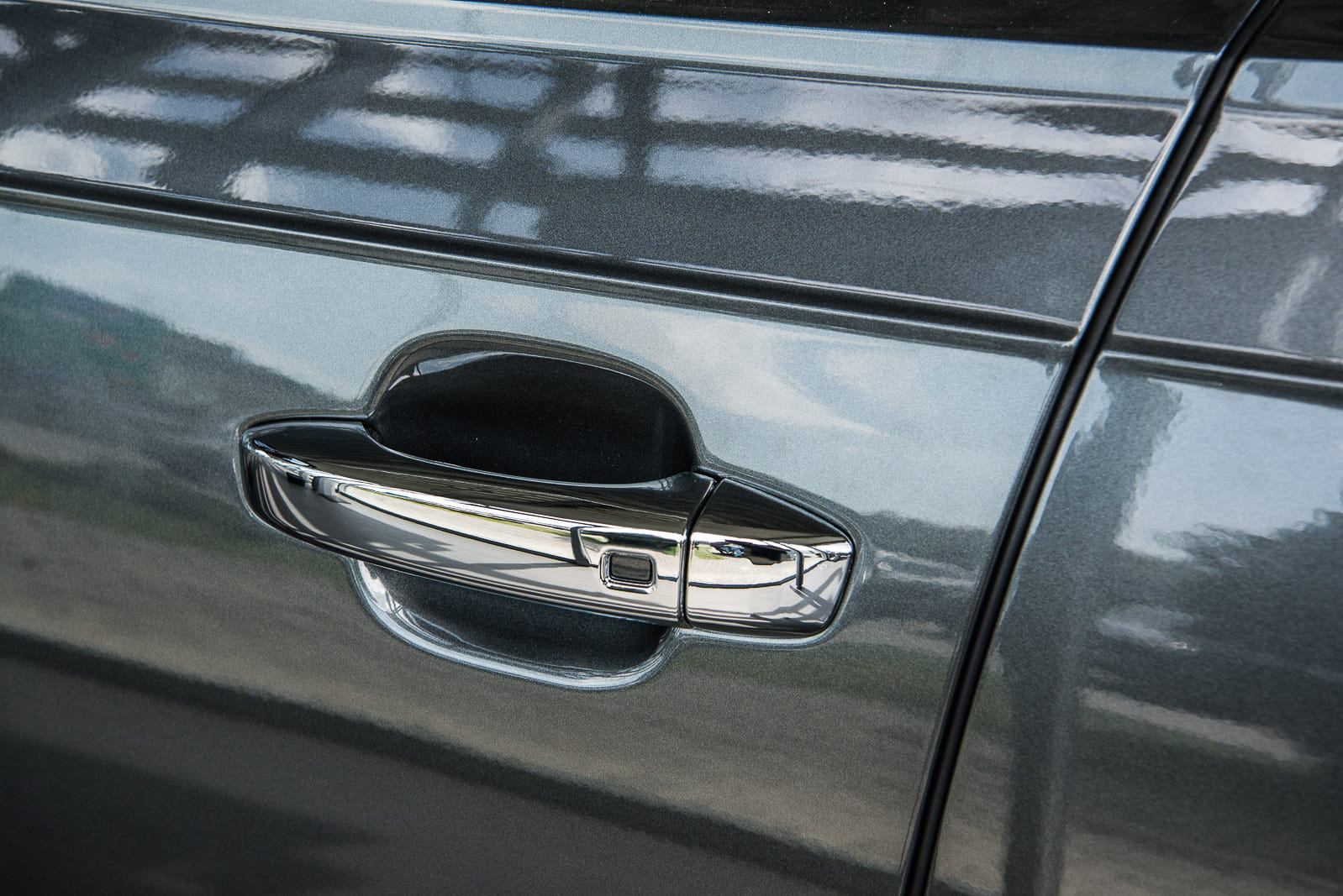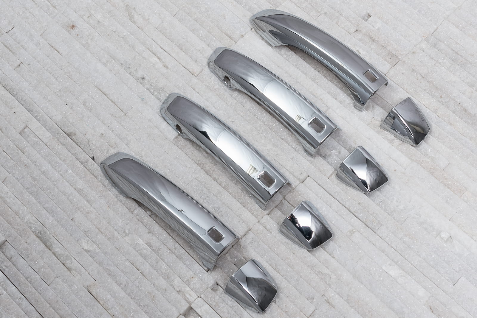 Dekoracyjne, chromowane nakładki na klamki to dodatek, który uzupełnia stylizację samochodu nutą sportowej elegancji. Idealnie dopasowane do linii samochodu, odmieniają wizerunek klamek modelu A8, czyniąc z nich prawdziwą ozdobę samochodu. Produkt wykonany z wysokiej jakości chromowanego tworzywa ABS.