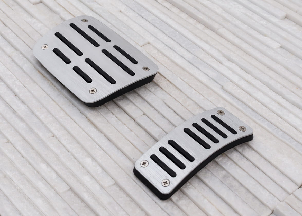 Komplet nakładek zaprojektowany został tak, aby zwiększyć komfort kierowcy podczas prowadzenia samochodu. Zintegrowane, gumowe elementy zapobiegają ślizganiu się podeszwy, co umożliwia pewniejsze operowanie pedałami podczas jazdy. Zastosowanie nakładek poprawia kontrolę nad autem w ekstremalnych sytuacjach, dzięki czemu mogą one mieć niebagatelny wpływ na bezpieczeństwo kierowcy i pasażerów. Nakładki wykonane zostały z materiałów wysokiej jakości, dzięki czemu są nie tylko trwałe, ale także prezentują się znakomicie przez długi czas. Dzięki zastosowaniu szczotkowanego aluminium, zestaw wspaniale komponuje się z innymi elementami wykończenia, podkreślając tym samym elegancki, dynamiczny charakter samochodu. Nakładki montuje się przy pomocy dołączonych wkrętów na fabryczne pedały. Zalecamy montaż profesjonalny. Zapraszamy do zakupu!