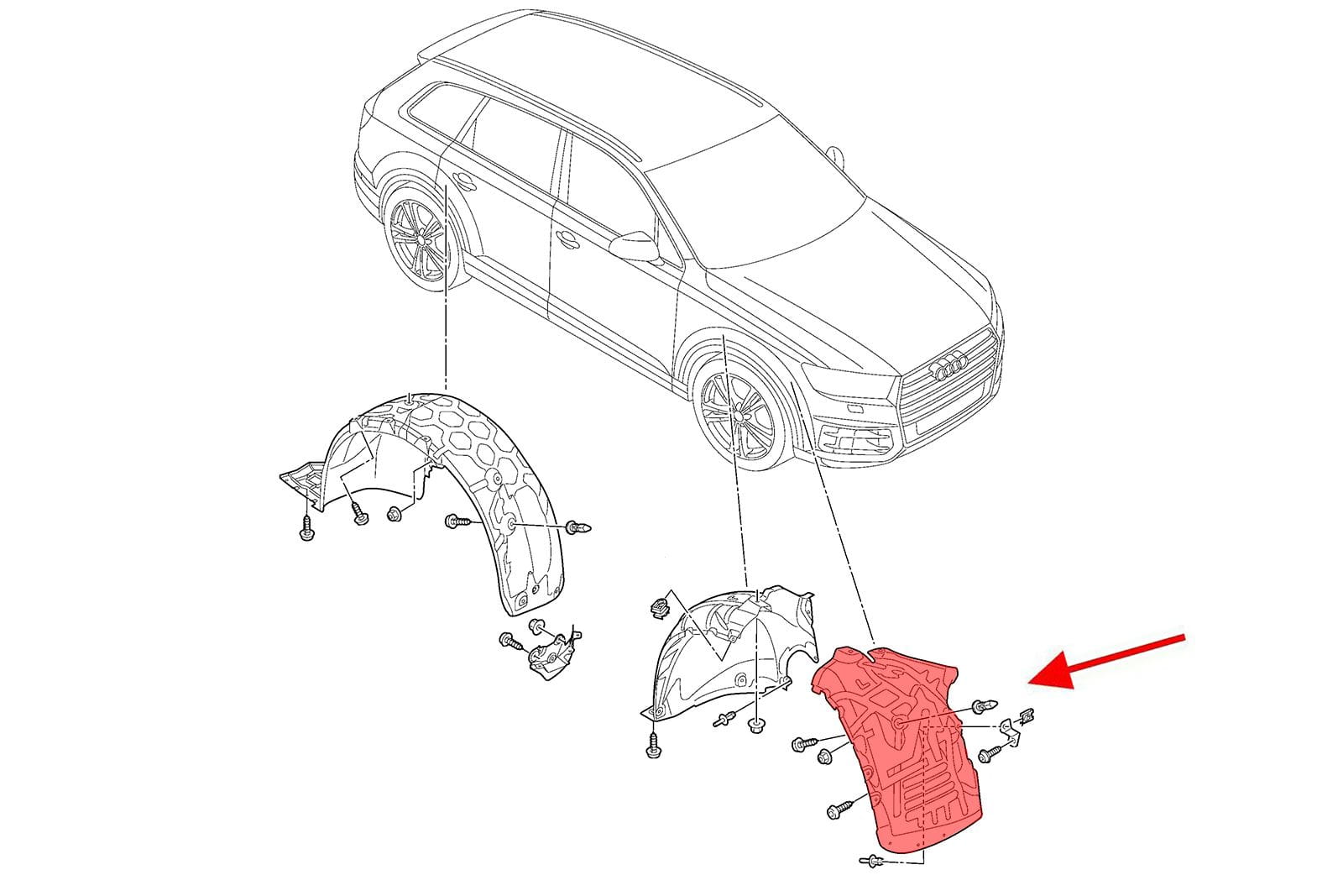 Wewnętrzne nadkole materiałowe przednie prawe, część przednia, do AUDI Q7 (4M) 2015-2020 (wersja przed liftingiem).