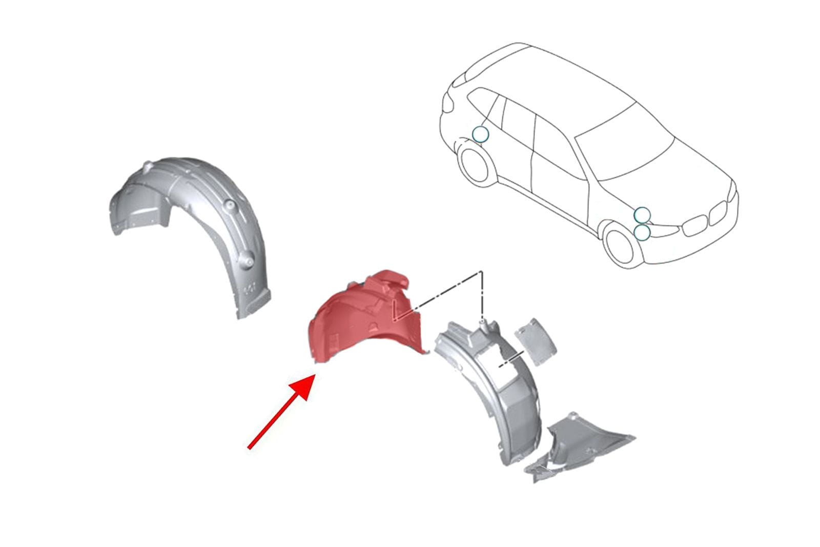 Wewnętrzne nadkole materiałowe przednie prawe (część tylna), do BMW iX3 (G08) 2020+. Nadkole typu "premium" - wykonane z wysokiej jakości materiału (włókien syntetycznych)- nie z plastiku! Nadkola tego typu są montowane w samochodach klasy premium.