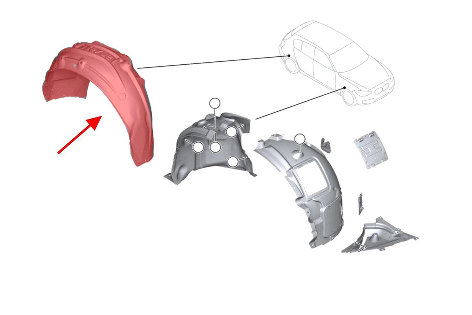 | Wewnętrzne nadkole materiałowe tylne prawe, do BMW Serii 3 (F30/F30N) 2011-2018. Nadkole typu "premium" - wykonane z wysokiej jakości materiału (włókien syntetycznych)- nie z plastiku! Nadkola tego typu są montowane w samochodach klasy premium. Specyfikacja: