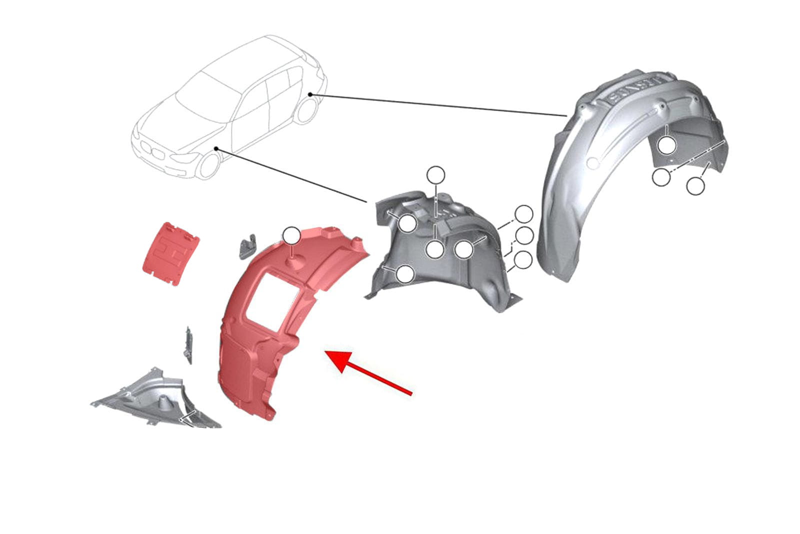Wewnętrzne nadkole lewe przednie (część przednia) do BMW Serii 3 (F31/F31N) 2011-2018.
