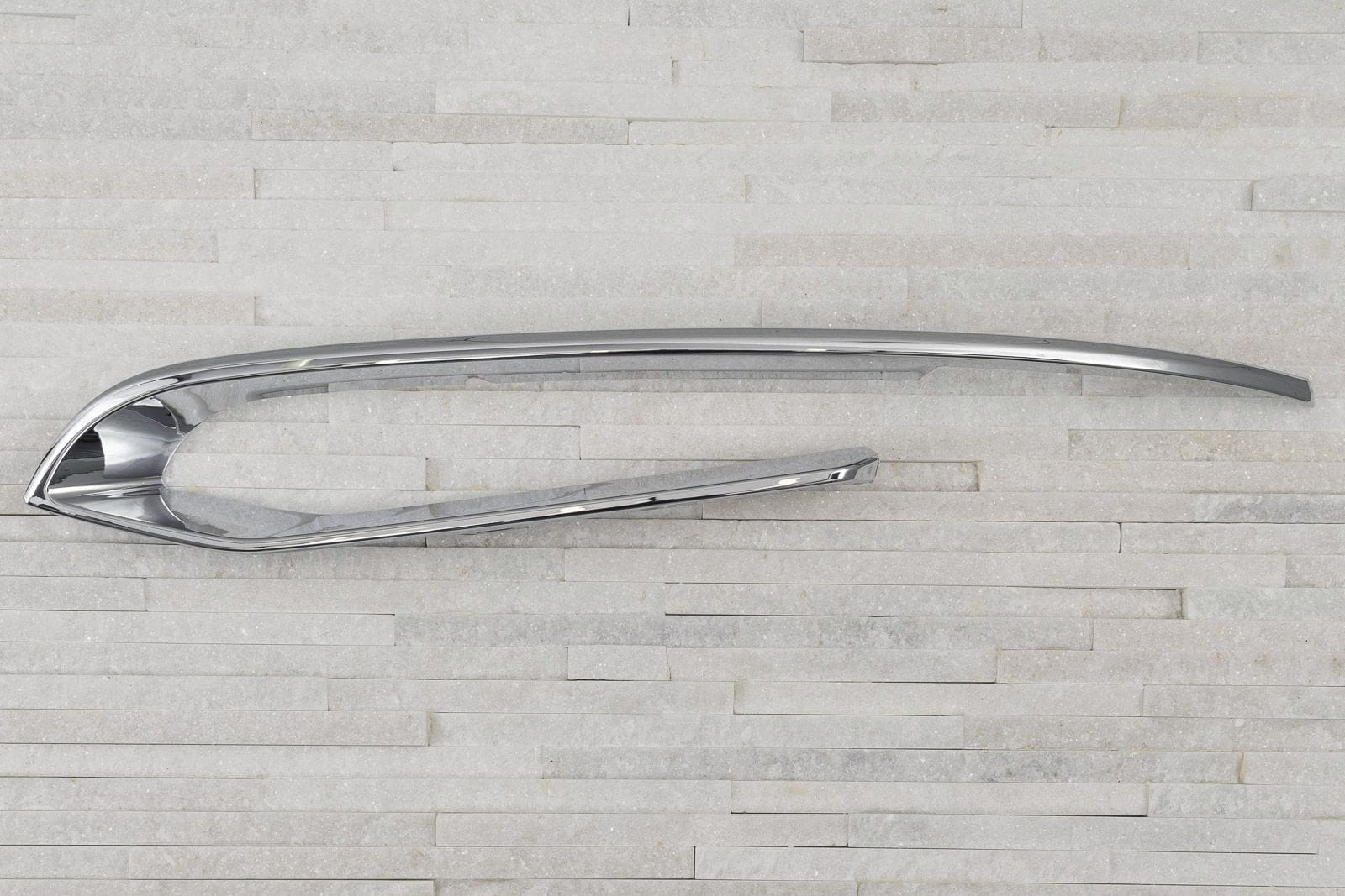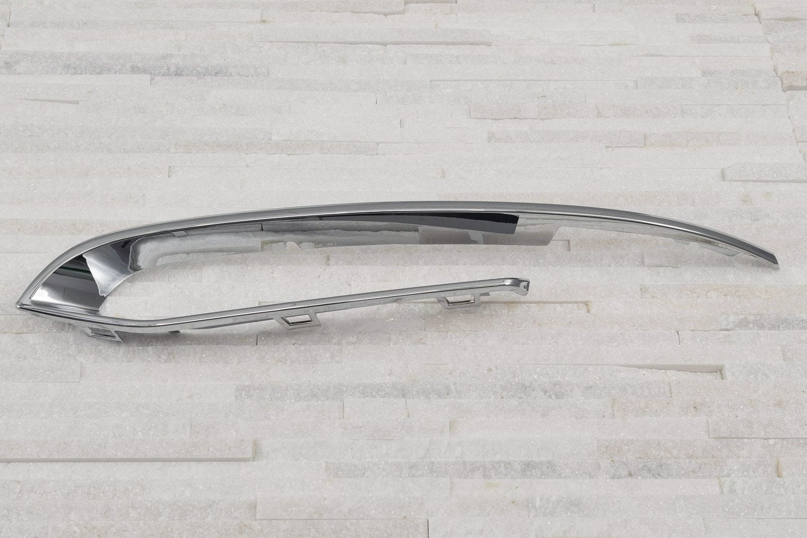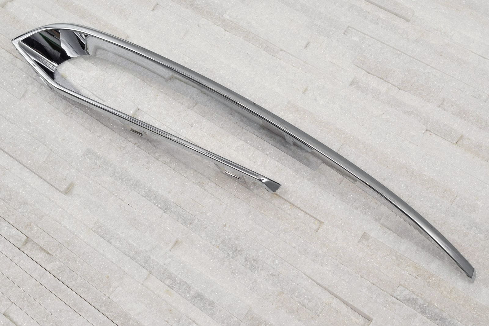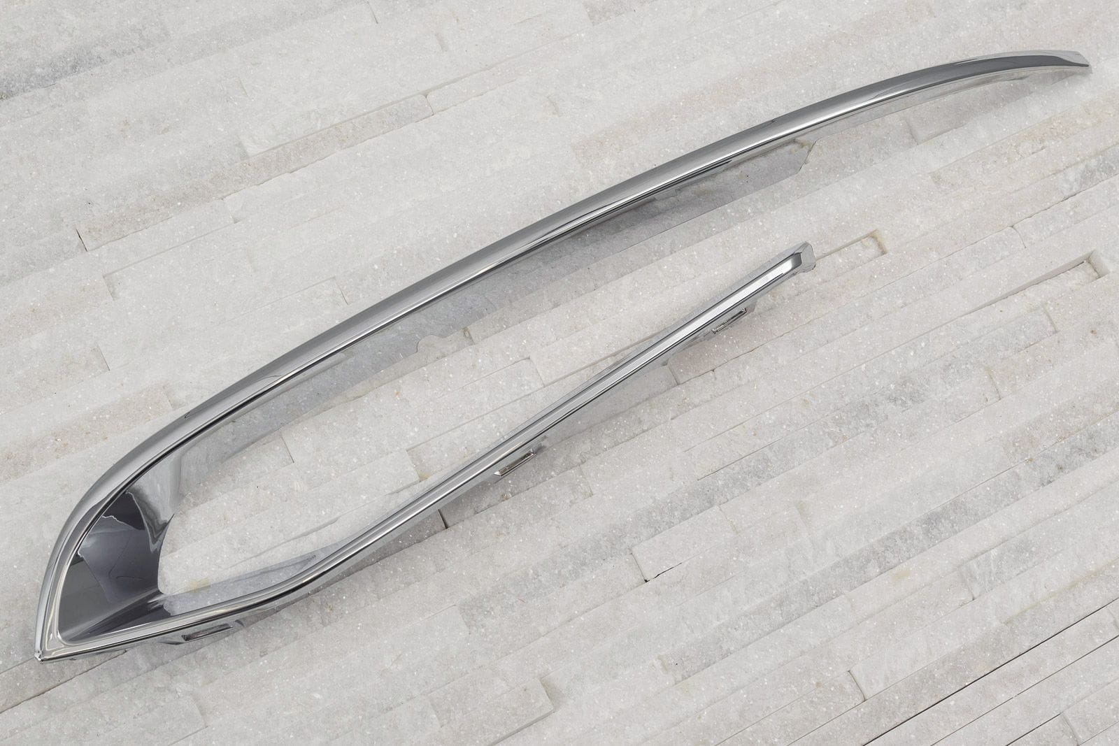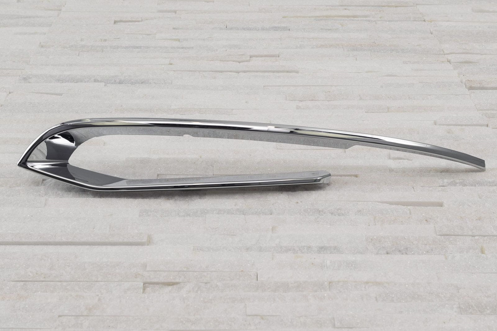 Chromowana listwa lewej zaślepki halogenu, kratki zderzaka, dla BMW Serii 5 (F10) 2013-2017 (wersja po faceliftingu).