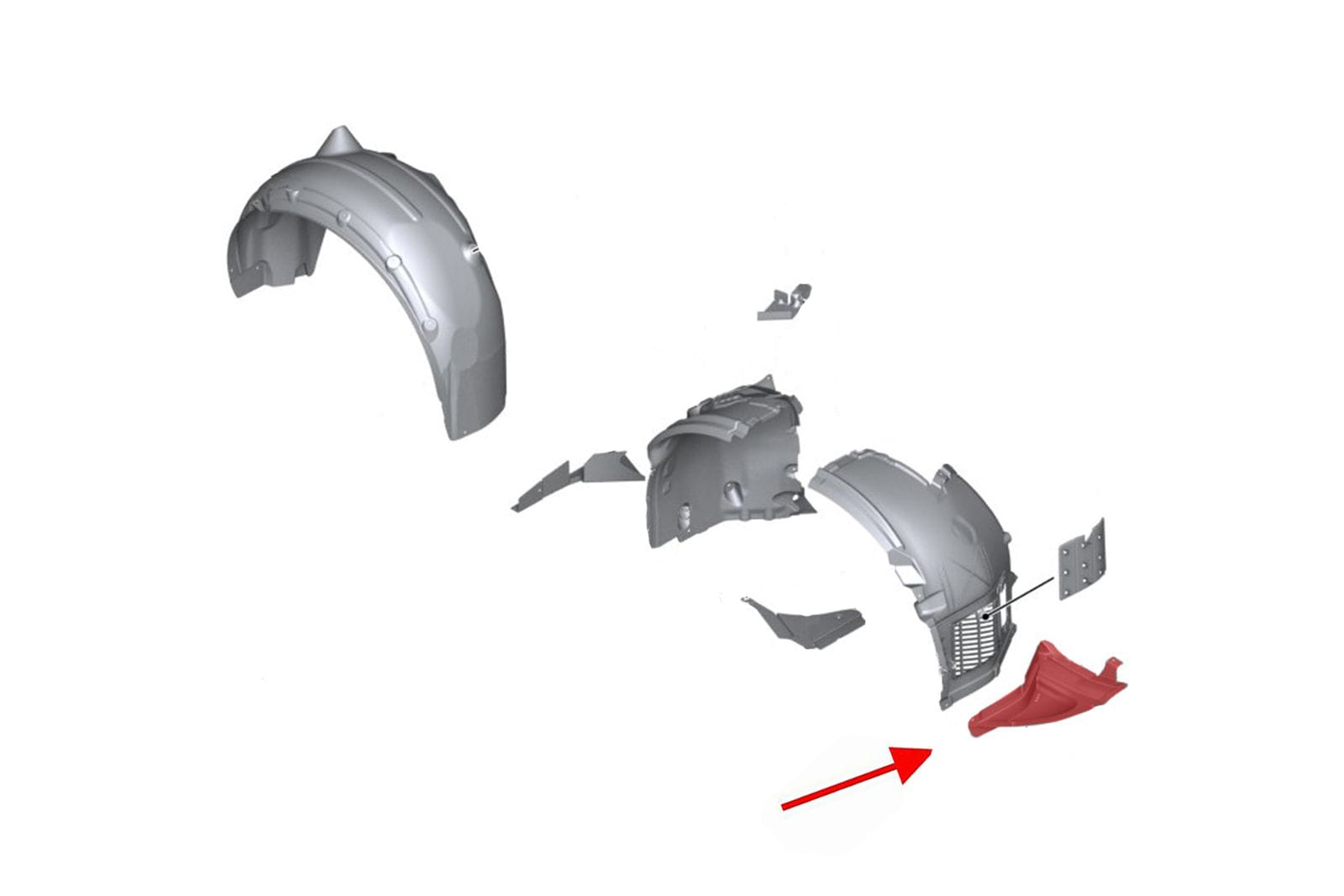 Osłona dolna, nadkole przednie prawe "trójkąt", do BMW Seria 7 (F01N) 2012-2015 (wersja po faceliftingu).
