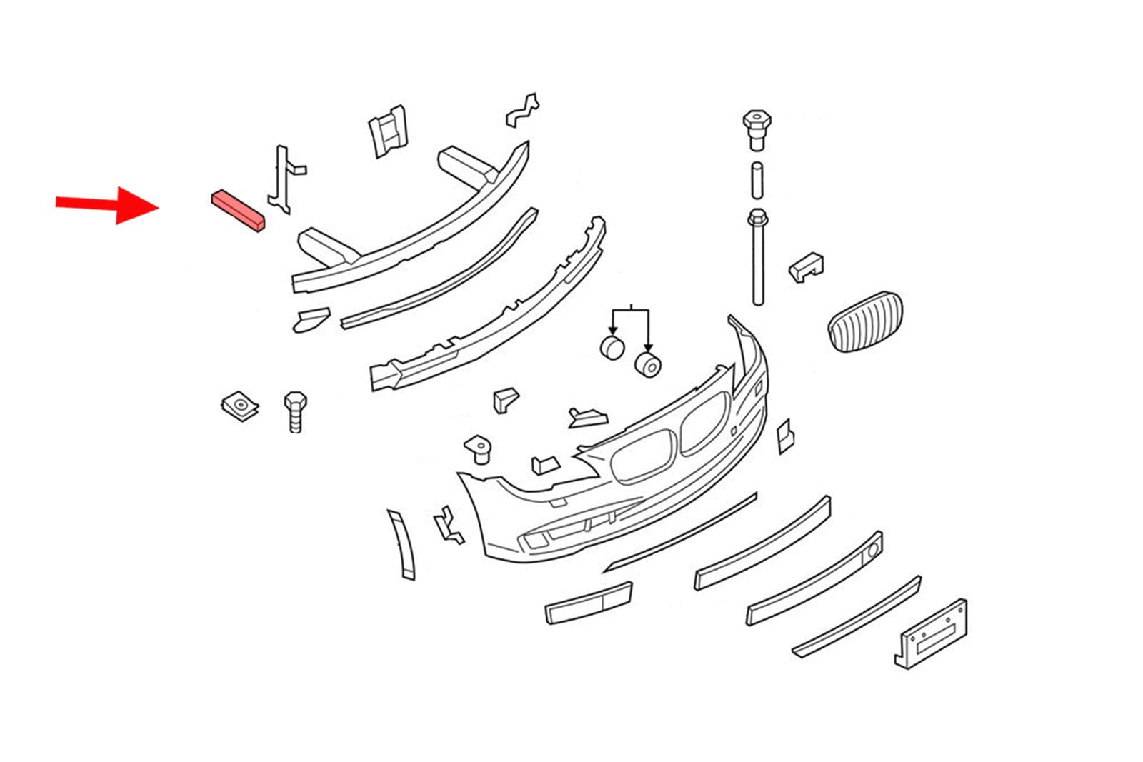 | Strefa zgniotu dolna prawa, odbój prawy, dla BMW Serii 7 (F02/F02N) 2008-2015. Specyfikacja: