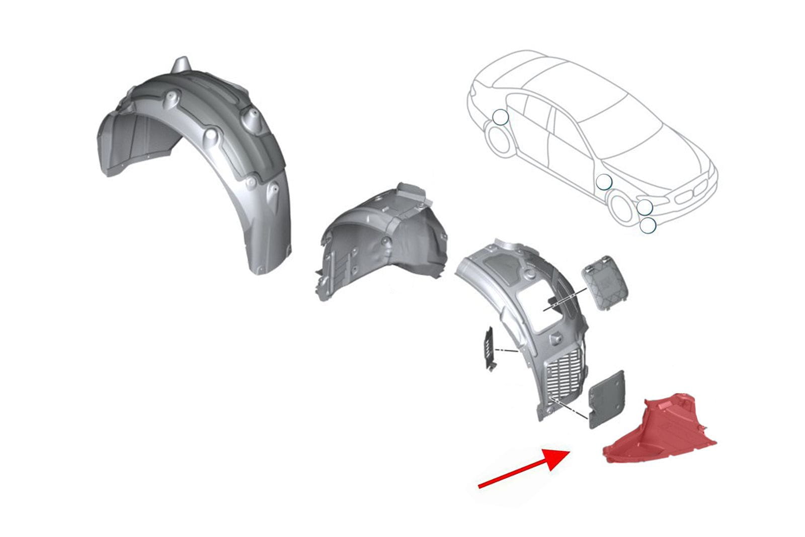 Osłona dolna, nadkole przednie prawe "trójkąt", do BMW Seria 7 (G11) 2015+.
