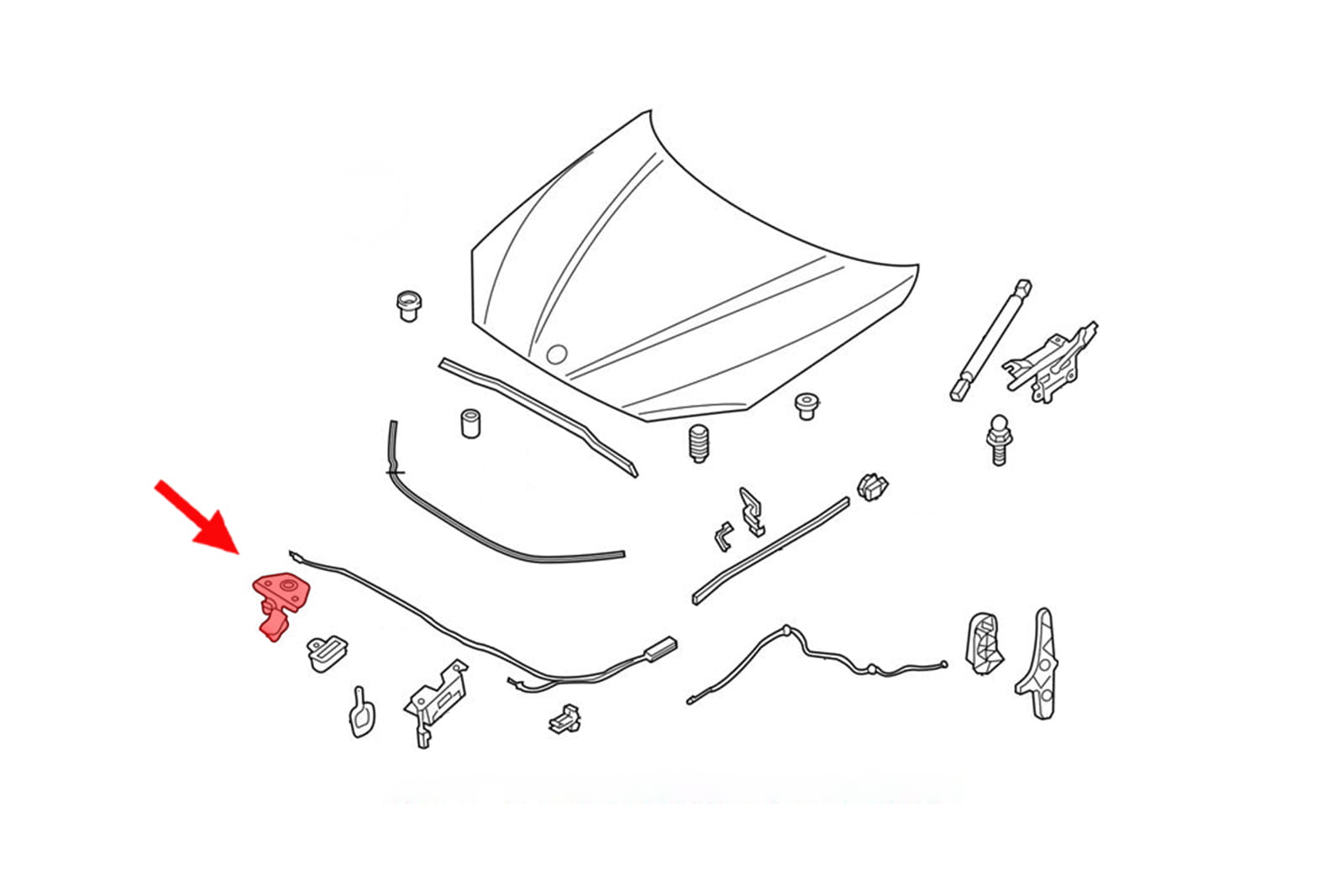 Zamek / zaczep / rygiel przedniej maski, dla BMW X1 (E84) 2009-2015. Specyfikacja: