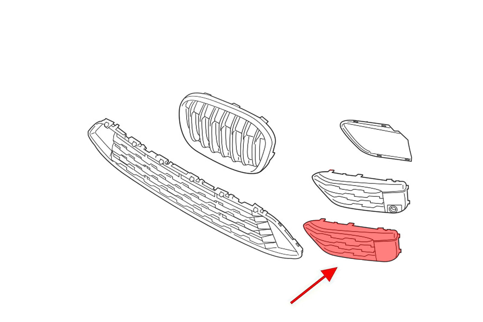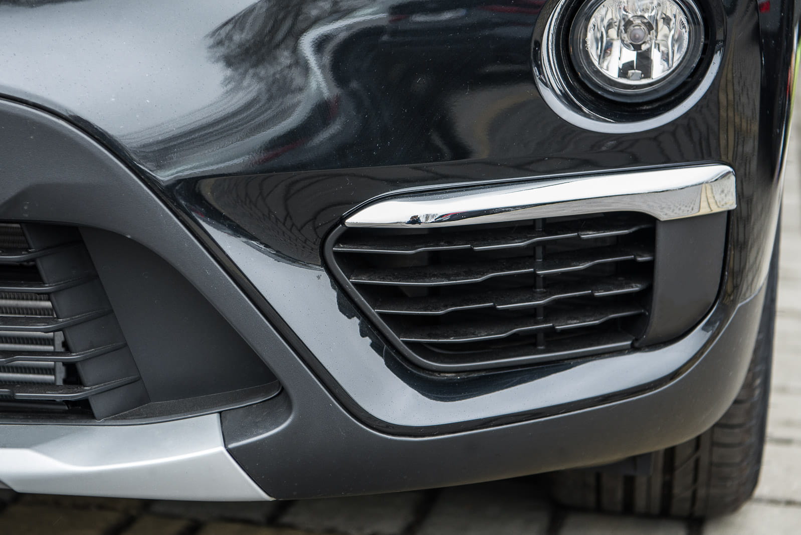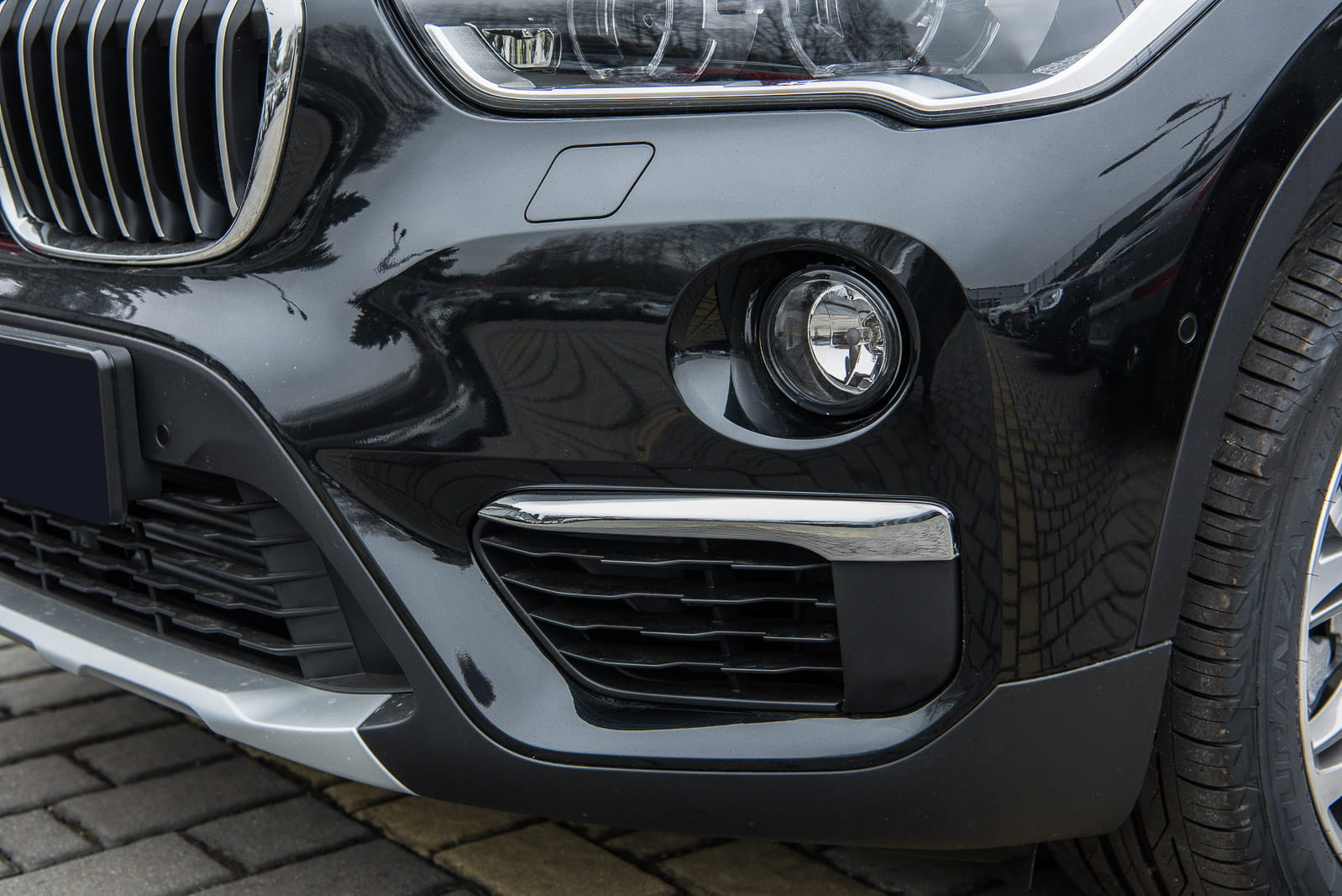 Kratka zderzaka, zaślepka lewa, dla BMW X1 (F48) 2015-2018 (wersja przed faceliftingiem). Nie pasują do wersji z pakietem M-Sport. Bez otworów pod czujniki parkowania PDC.