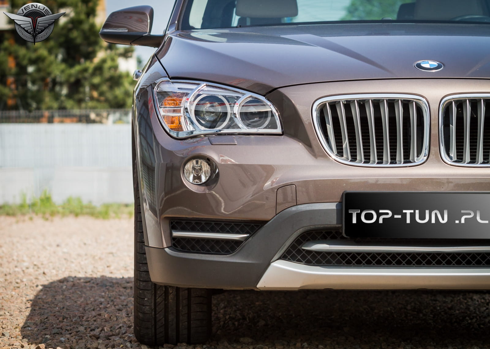 Chromowane nakładki lamp przednich, zaprojektowane dla BMW X1 (E84) 2009-2015.
