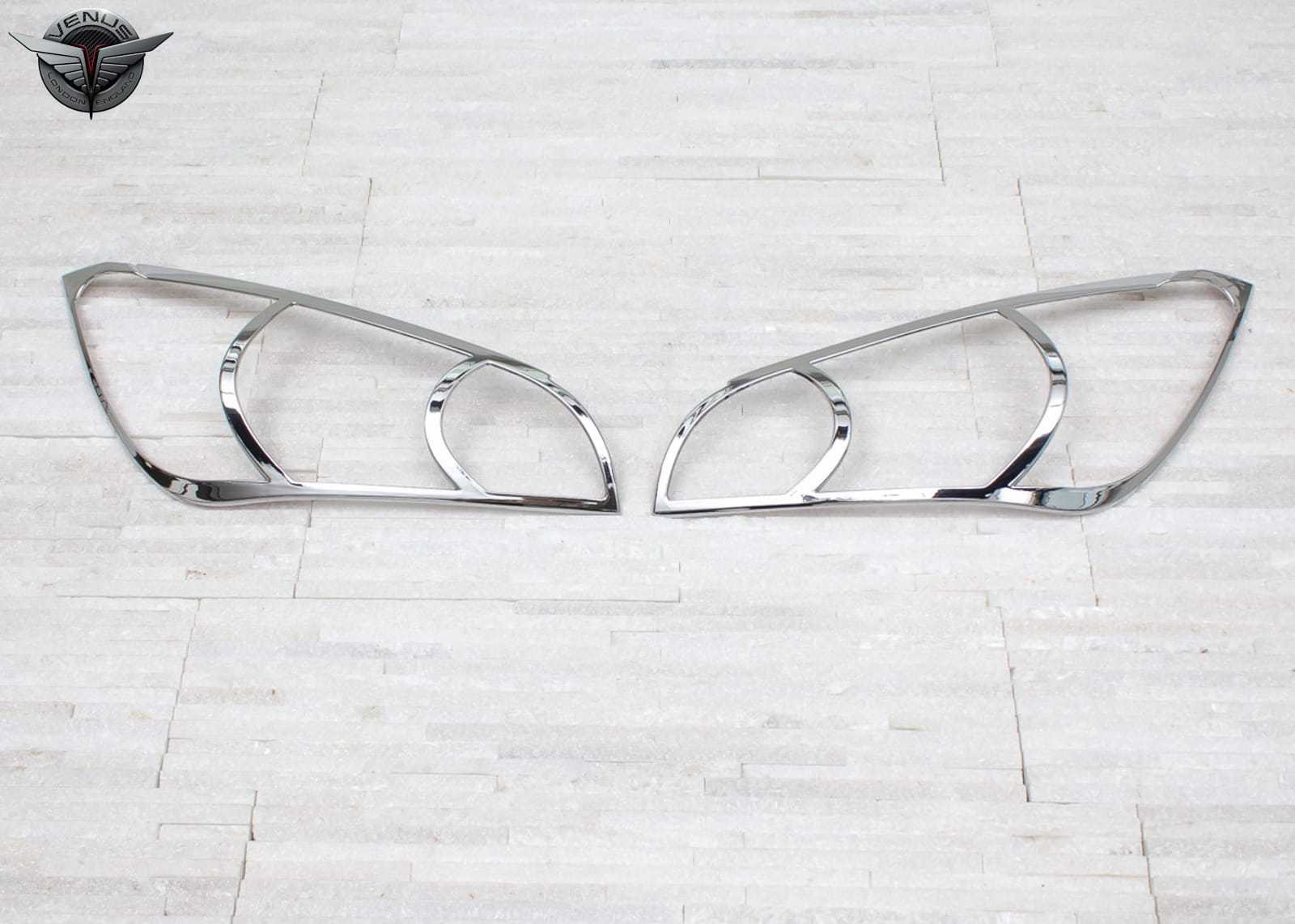 Produkt wykonany jest z wysokiej jakości chromowanego tworzywa ABS. W zestawie znajduje się komplet dwóch nakładek na lampy przednie.