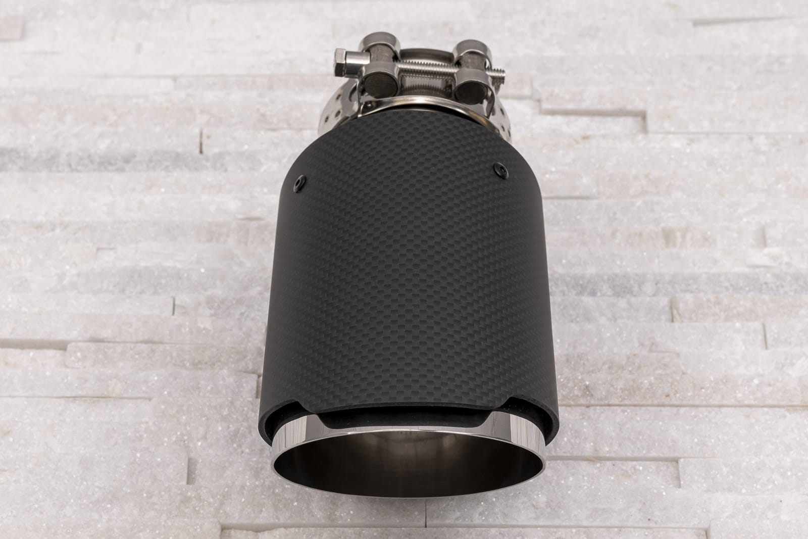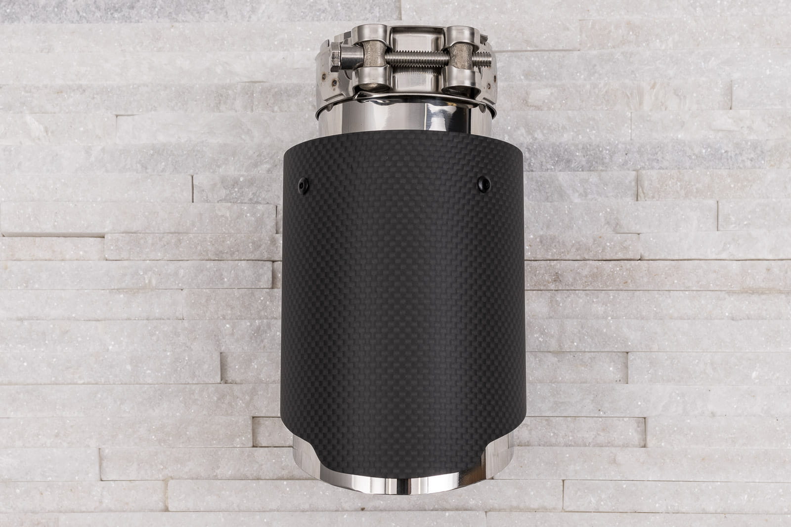 Montaż odbywa się poprzez nałożenie elementu na oryginalną rurę wydechu oraz dokręcenie znajdujących się w zestawie śrub, mocujących końcówkę na stałe. Zalecamy montaż profesjonalny.