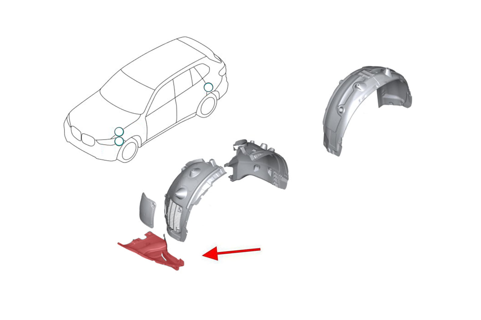 Osłona dolna, nadkole przednie lewe "trójkąt", do BMW X5 (G05) 2018+.