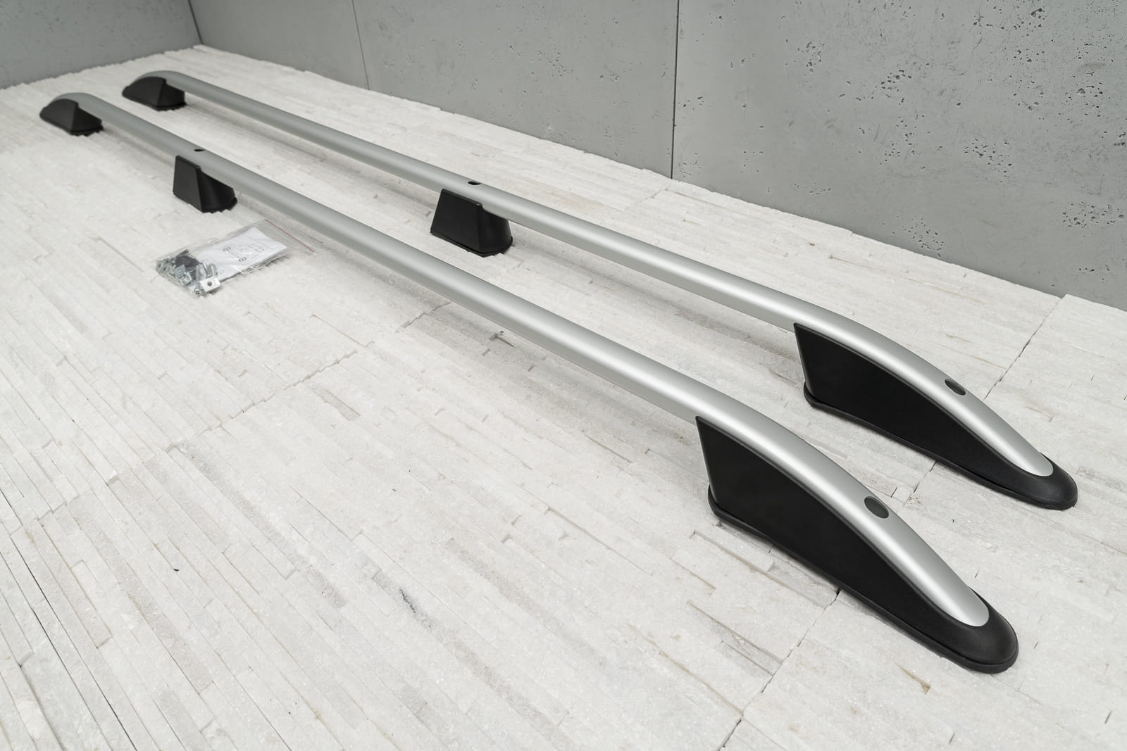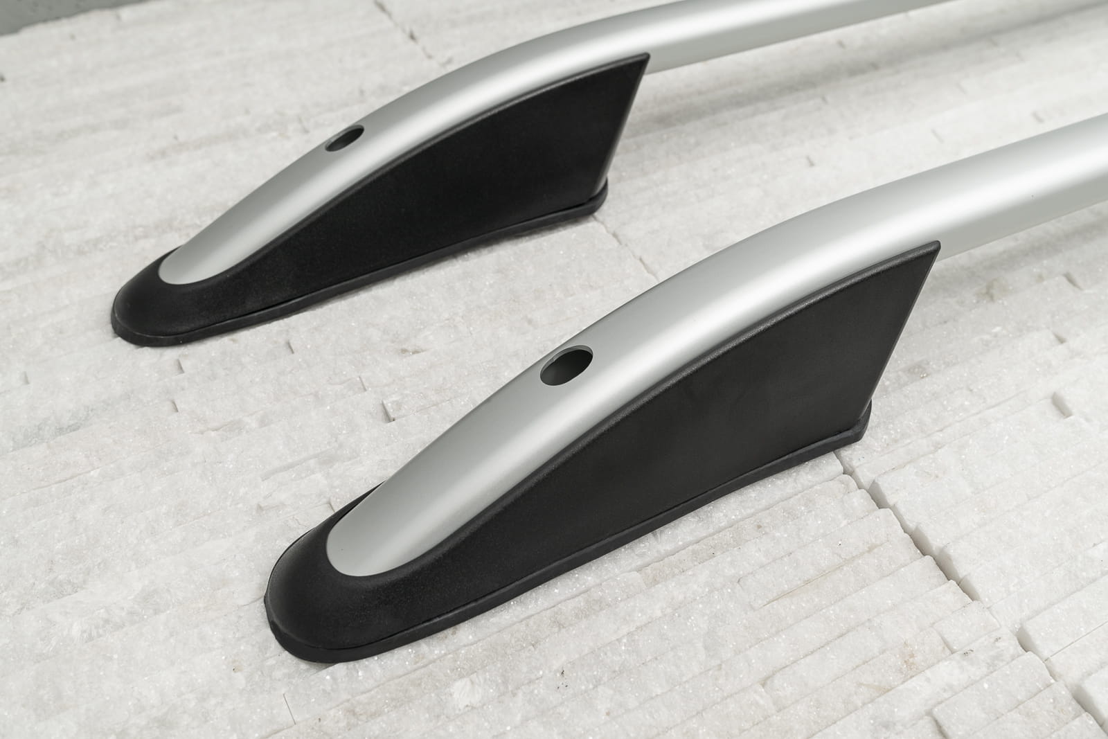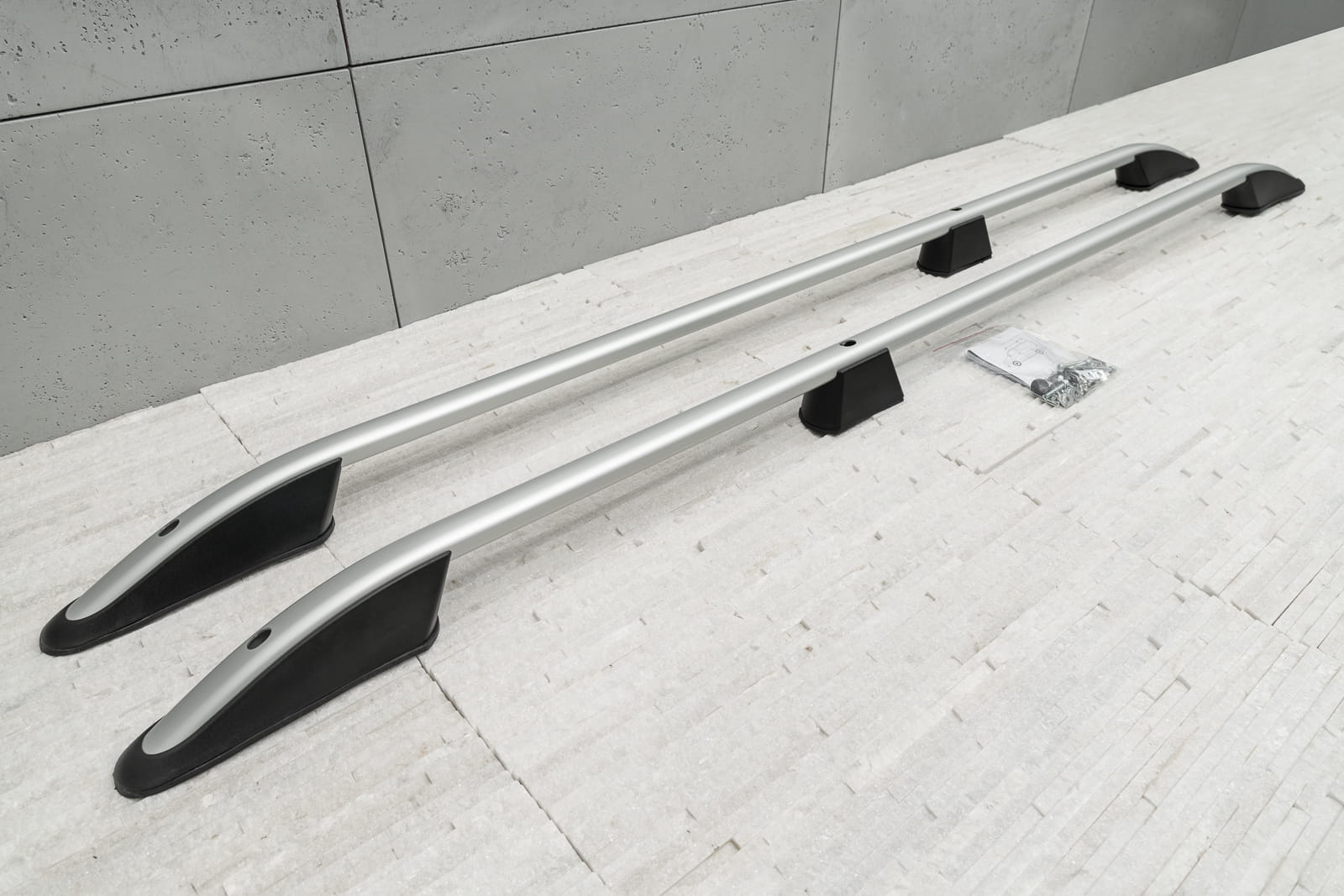 Produkt wykonany z wysokiej jakości aluminium i tworzywa sztucznego ABS. W zestawie znajduje się komplet relingów na stronę lewą i prawą. Relingi montowane w miejsca fabryczne za pomocą dostarczonych mocowań.