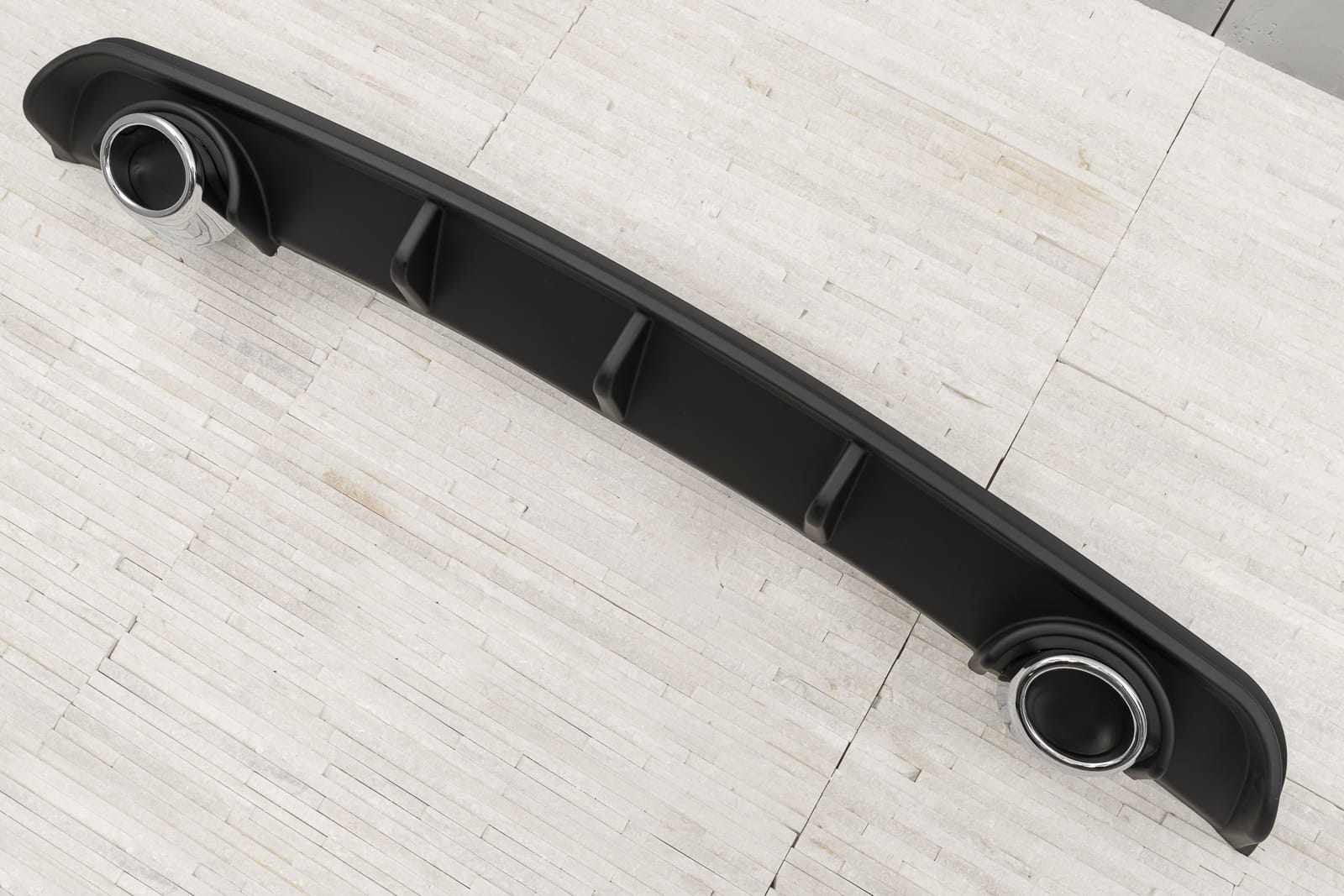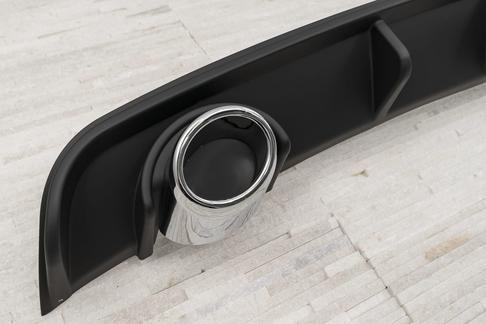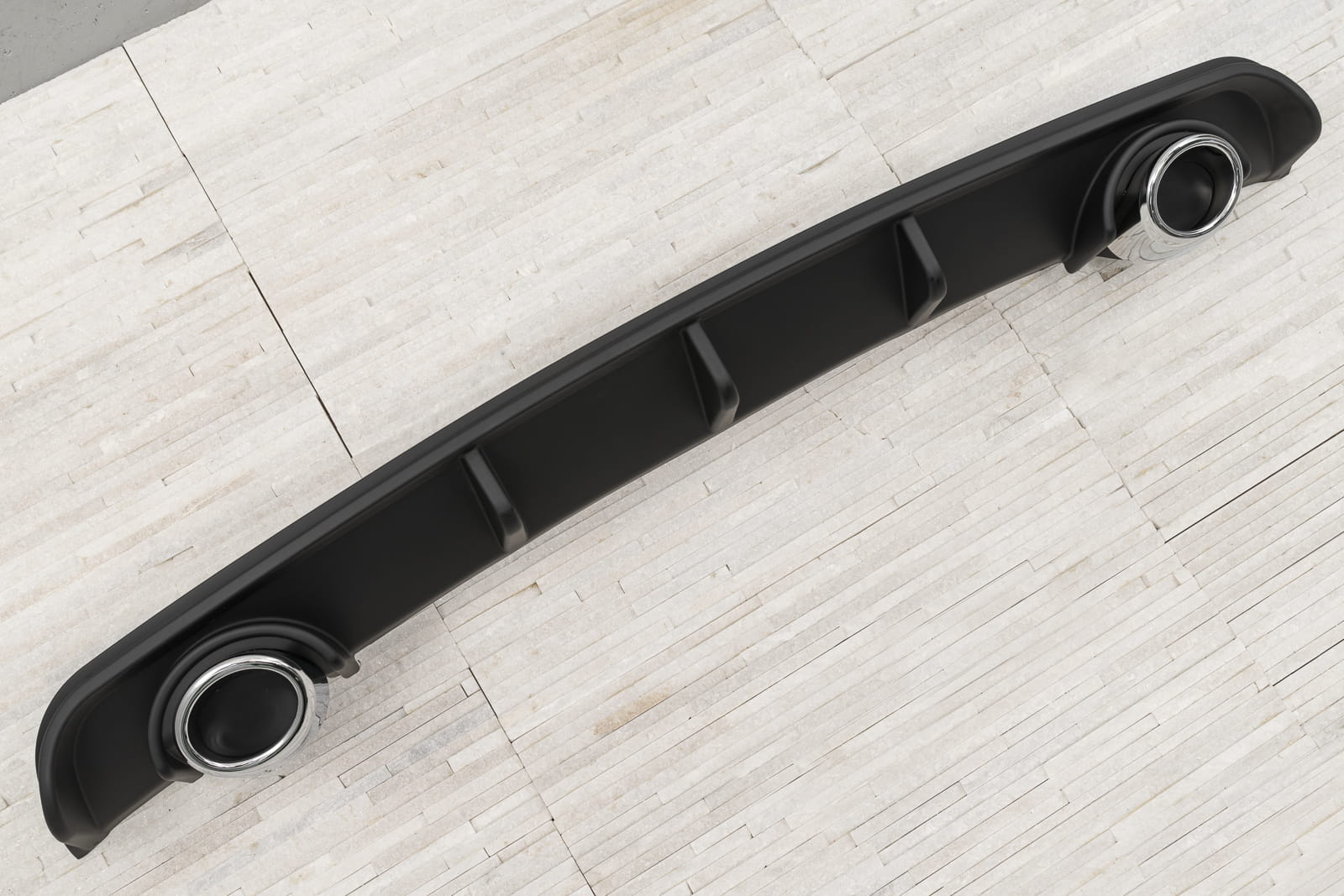 Dyfuzor zaprojektowany został tak, aby idealnie współgrać z innymi elementami wykończenia, dopełniając dynamiczny oraz sportowy charakter Twojego auta. Oprócz walorów, wizualnych dyfuzor poprawia areodynamikę samochodu, a także redukuje szum powietrza, które przepływa pod samochodem.