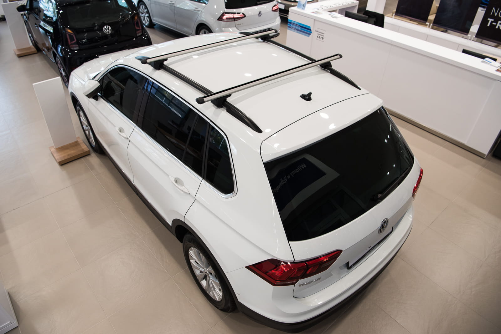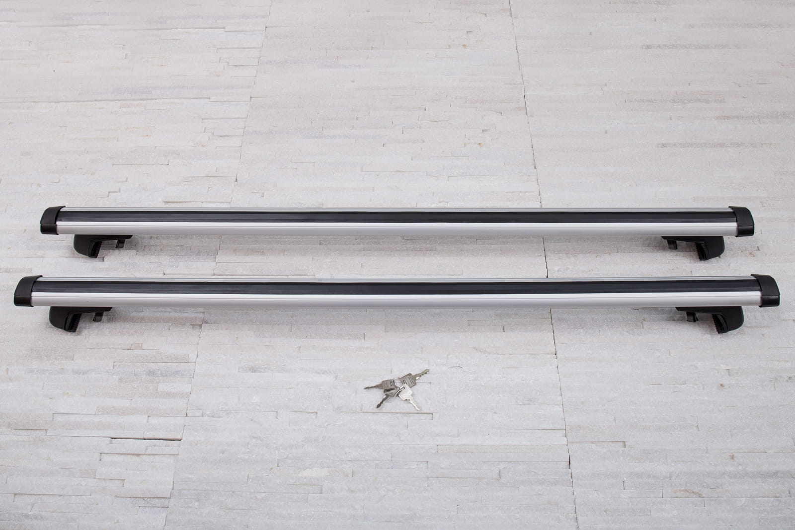 W komplecie znajdują się: dwie belki aluminiowe i cztery zaciski i system zabezpieczenia z kluczykami.
