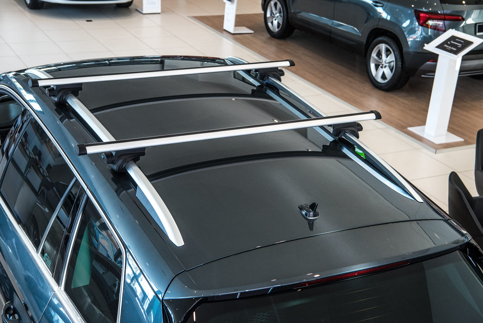 W komplecie znajdują się: dwie belki aluminiowe i cztery zaciski i system zabezpieczenia z kluczykami.