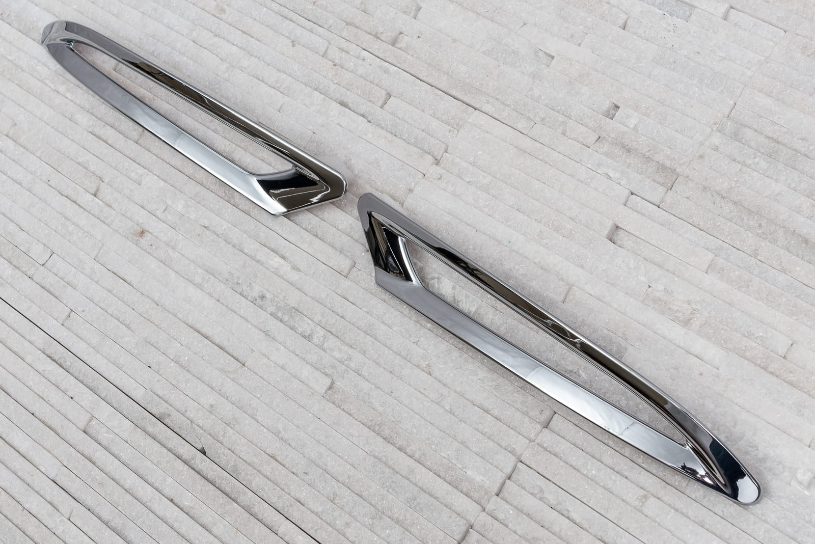 Zestaw zawiera komplet dwóch listew na halogeny. Produkt wykonany z wysokiej jakości chromowanego tworzywa ABS. Montowane są za pomocą dwustronnie klejącej zaaplikowanej na wewnętrznej elementów. Zalecamy montaż profesjonalny.