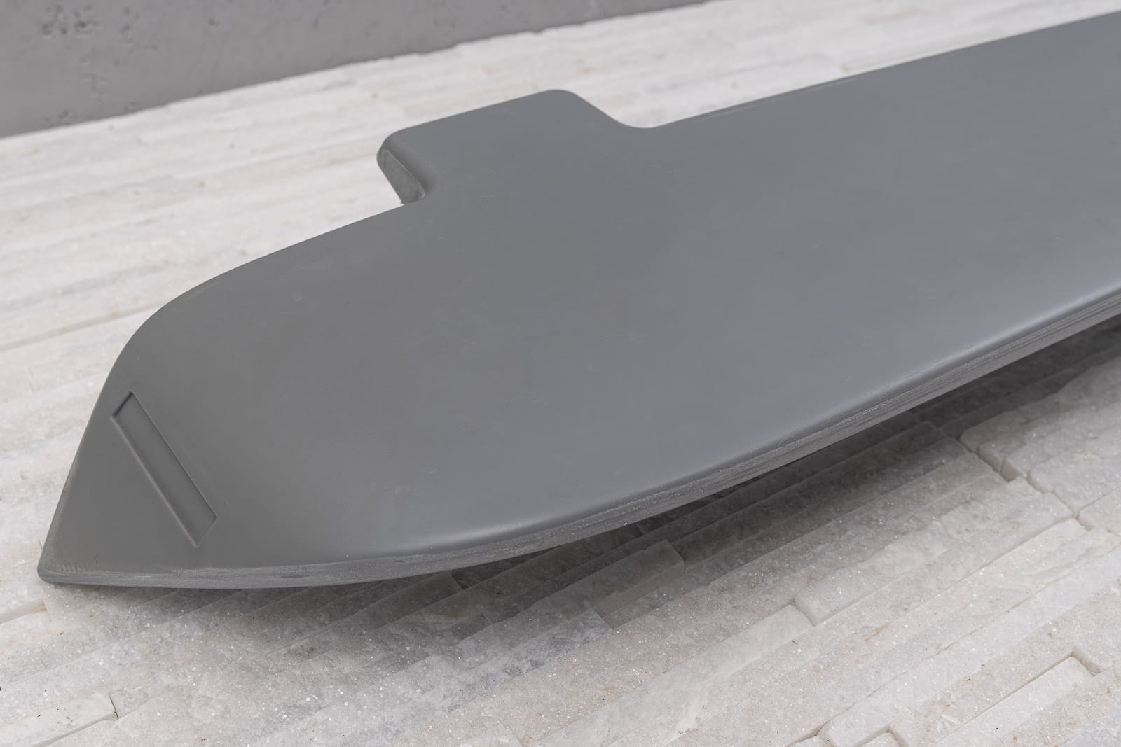 Element przeznaczony na klapę bagażnika, wymaga dalszej obróbki lakierniczej. Produkt wykonany został z wysokiej jakości tworzywa sztucznego ABS. Spoiler montowany jest za pomocą kleju do zastosowań motoryzacyjnych (najlepszy jest klej do montażu szyb samochodowych) lub przy użyciu dostarczonych śrub.