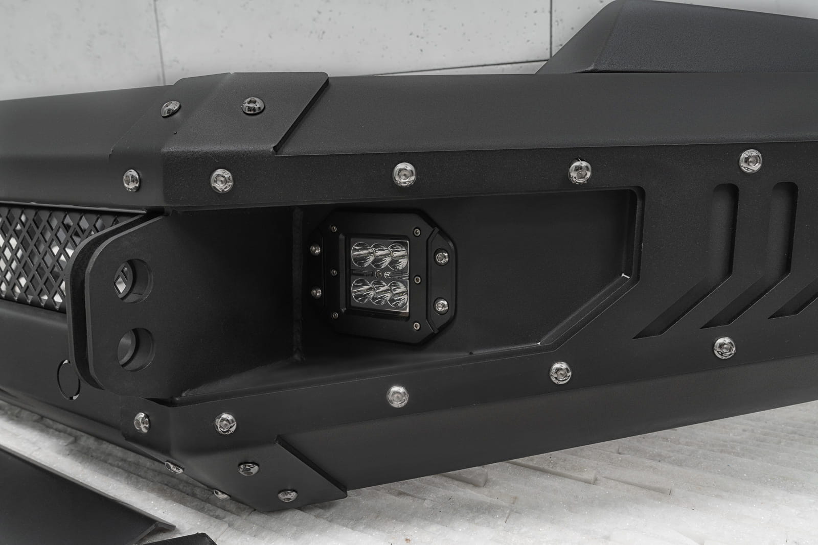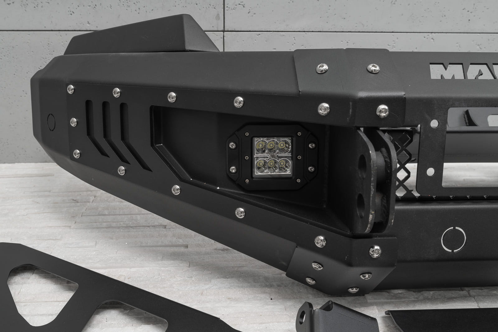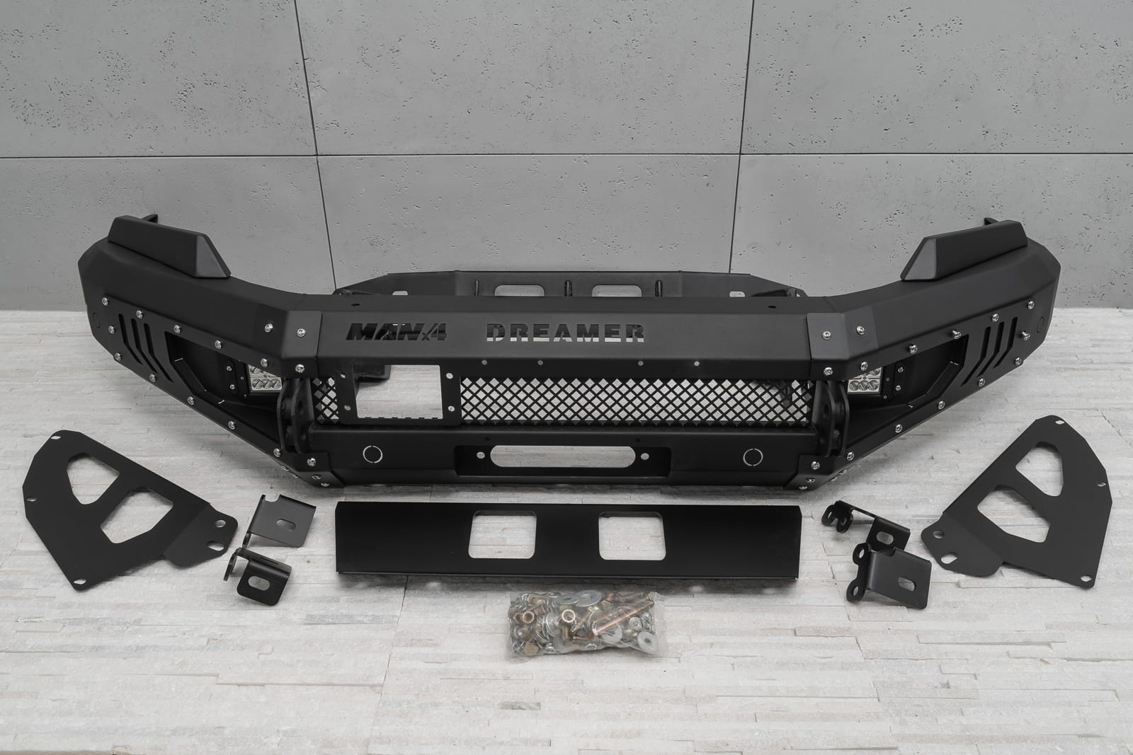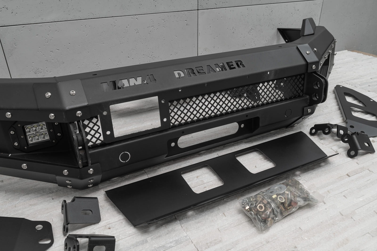 Oferowany model doposażony został w silne mocowania na szekle, które znajdują się w komplecie. Zderzak wyposażony został w dwie lampy LED o mocy 12W każde. Posiada on również miejsce na instalacje wyciągarki do 5500 kg z liną syntetyczną.