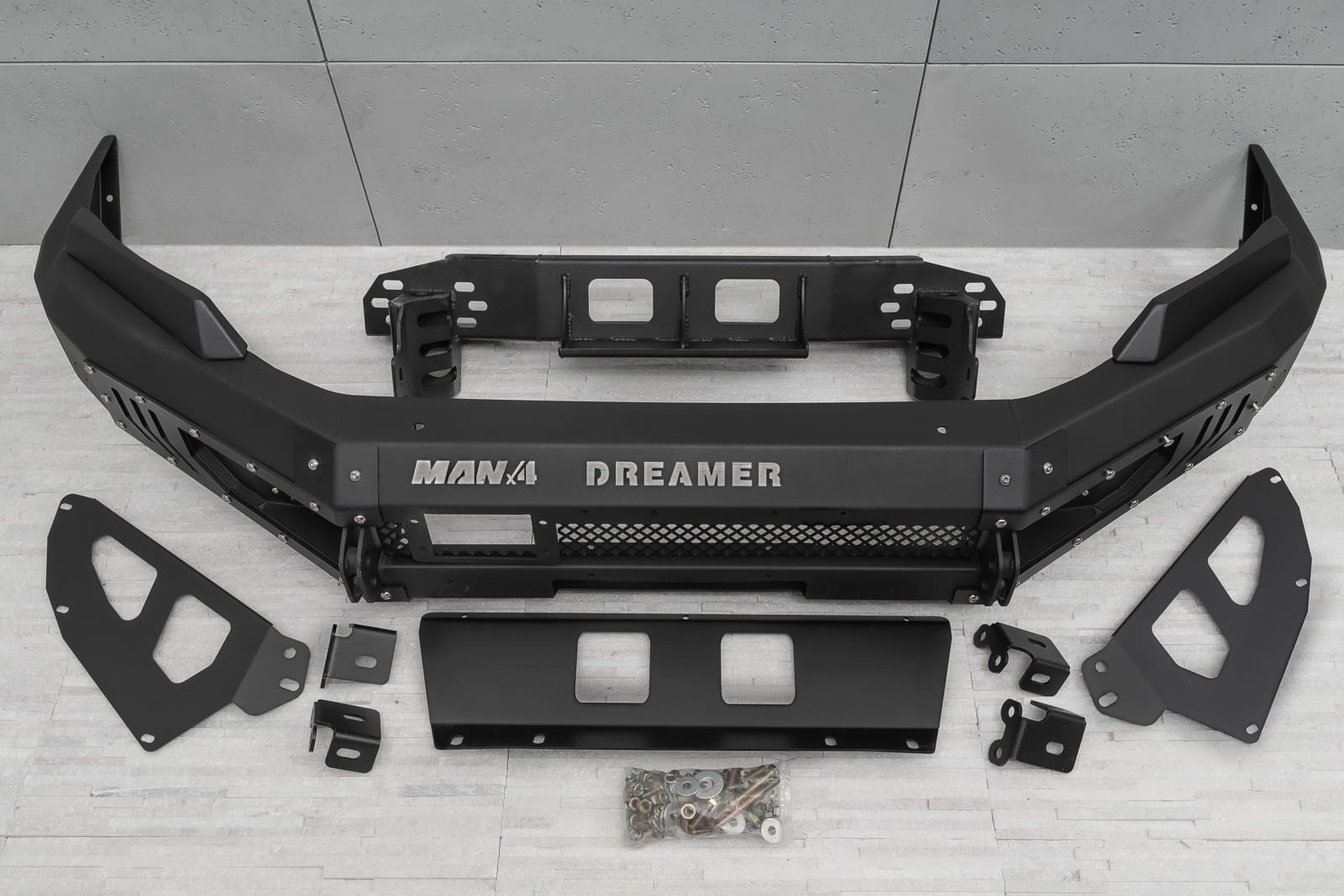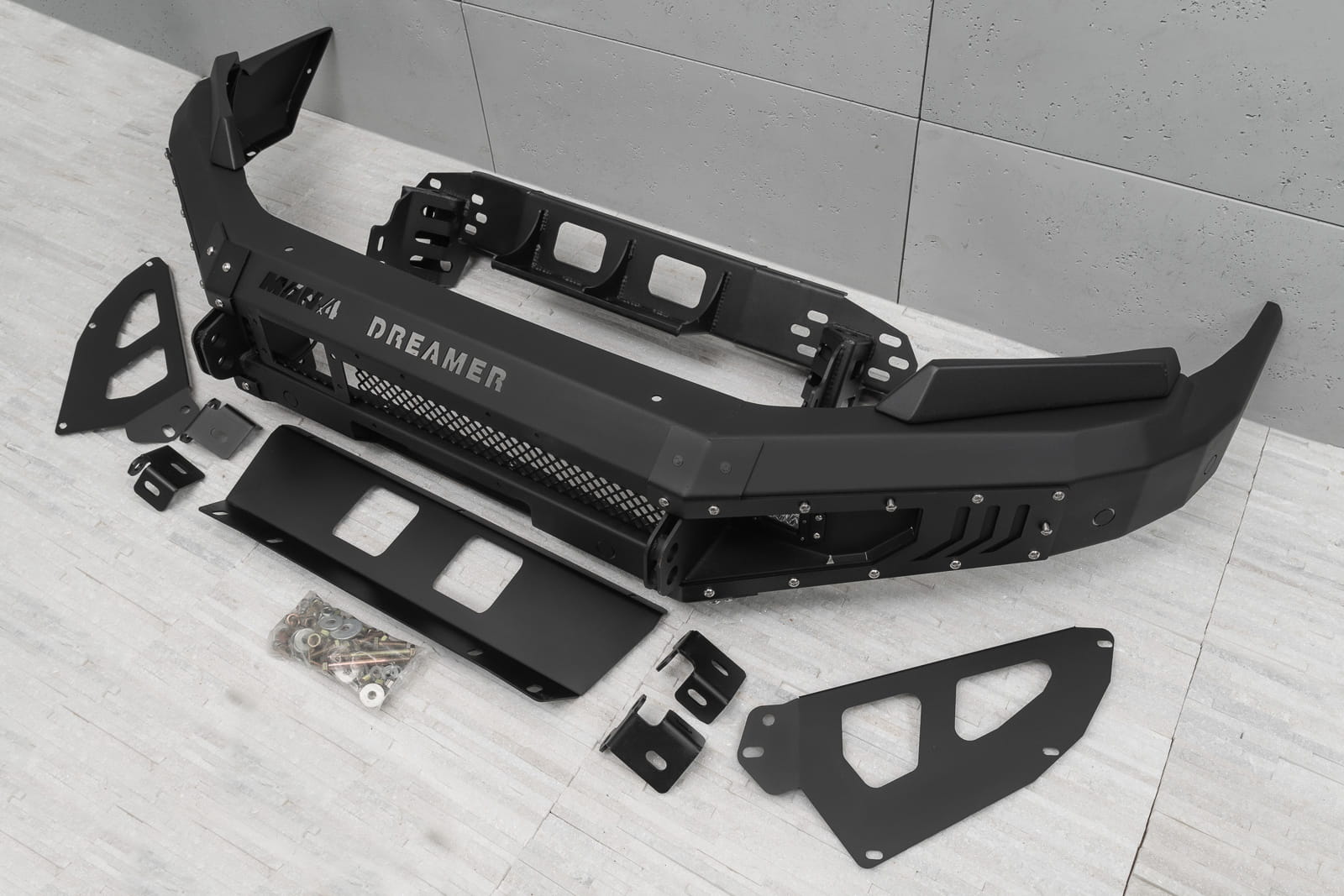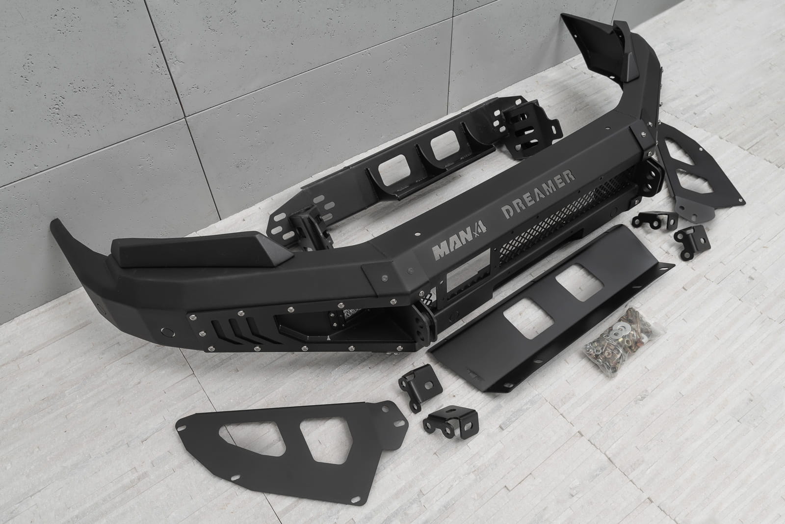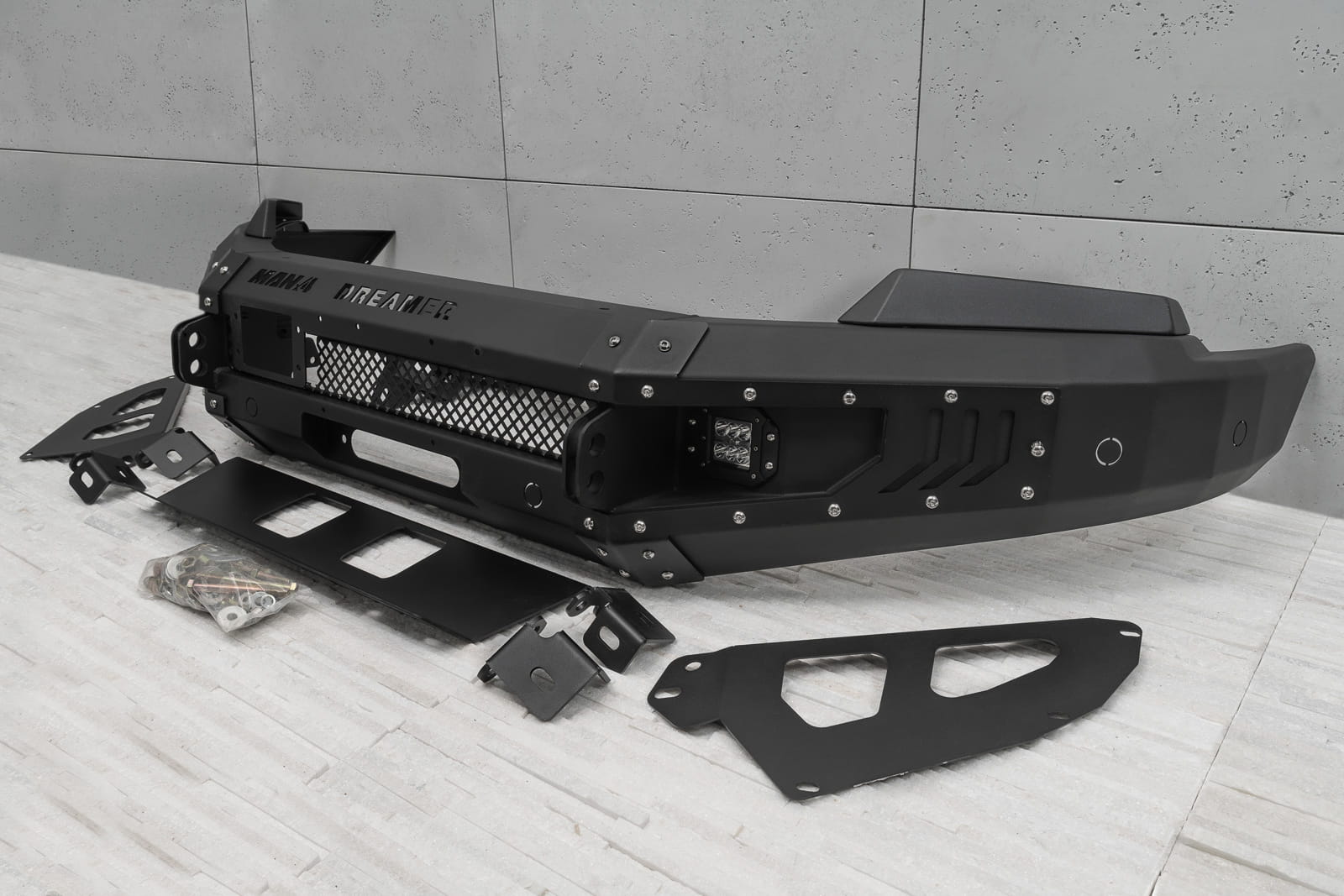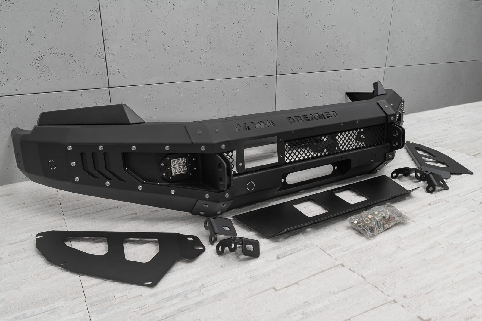 Oferowany model doposażony został w silne mocowania na szekle, które znajdują się w komplecie. Zderzak wyposażony został w dwie lampy LED o mocy 12W każde. Posiada on również miejsce na instalacje wyciągarki do 5500 kg z liną syntetyczną.