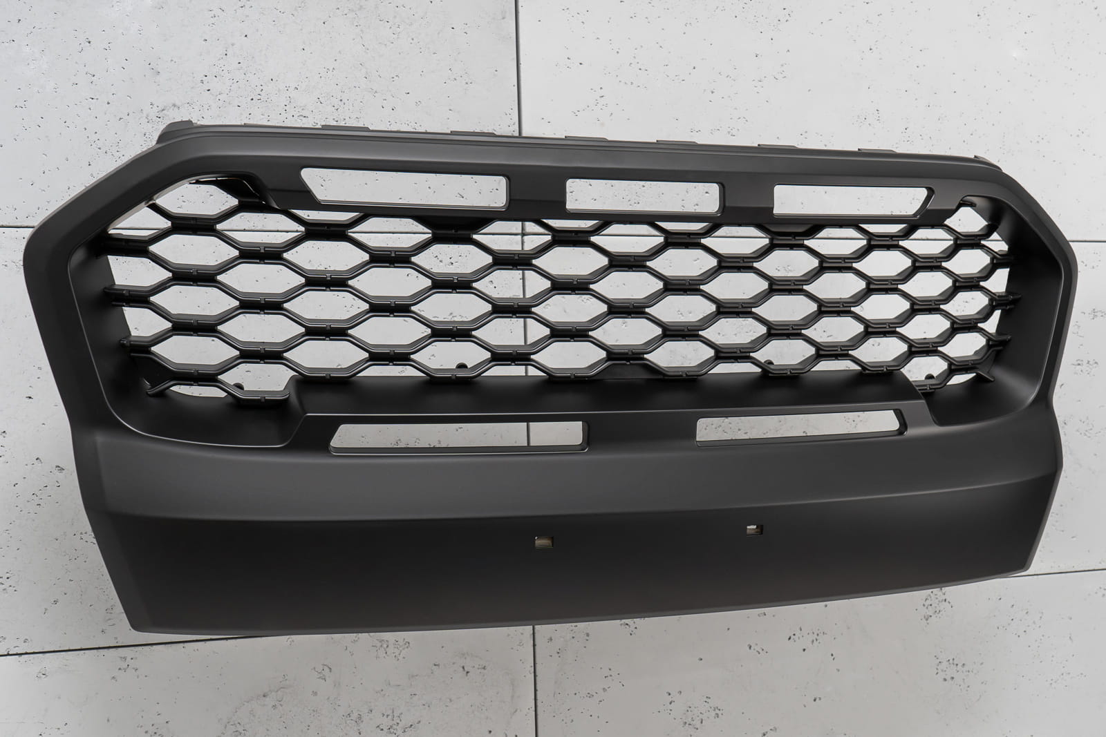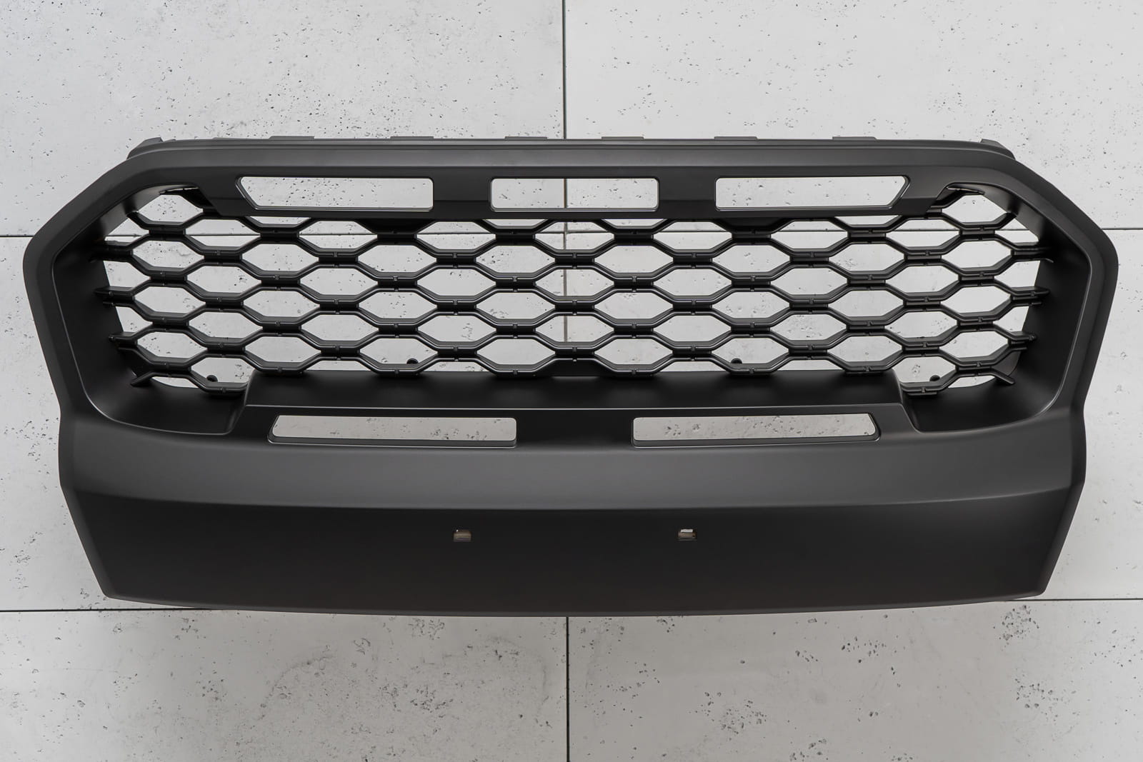 Tuningowy grill zaprojektowany został tak, aby idealnie współgrać z designem FORDA RANGERA. Siatka grilla nieodzownie przywodzi na myśl, budzące respekt, pełne mocy samochody z najwyższej półki. Element zachwyci agresywnym charakterem, uwydatniając wizualne walory naszego samochodu.