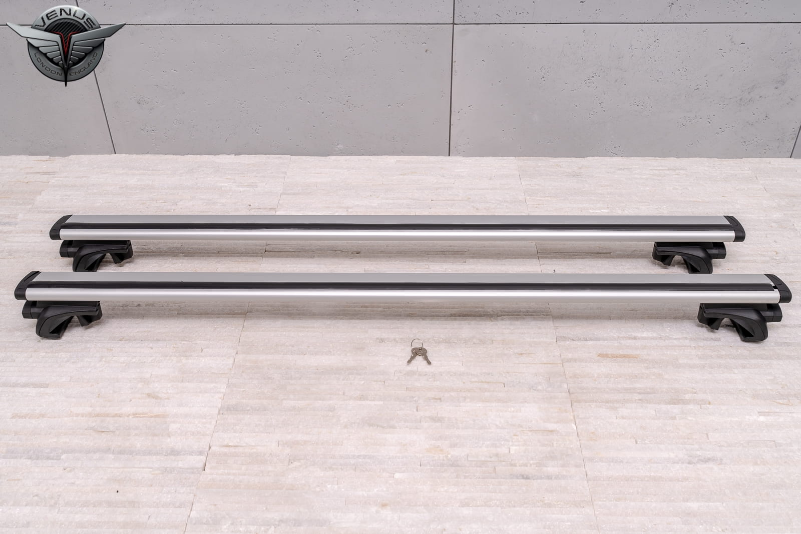 Produkt fabrycznie nowy, oryginalnie zapakowany, w kolorze srebrnym. W komplecie znajdują się: dwie belki, dwa kluczyki oraz klucz imbusowy.