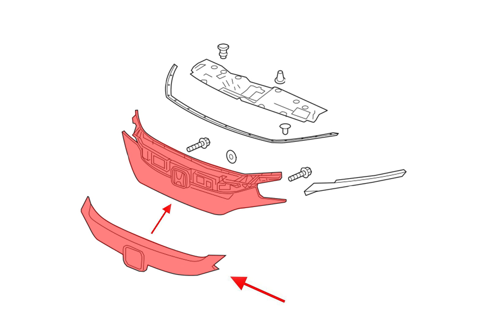 Grill przedni, atrapa dla HONDA CIVIC X 2016-2019 wersja SEDAN/HATCHBACK (przed faceliftingiem). Specyfikacja: