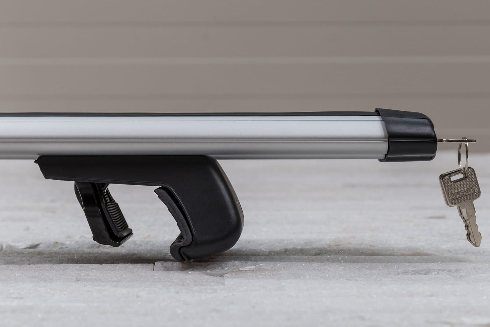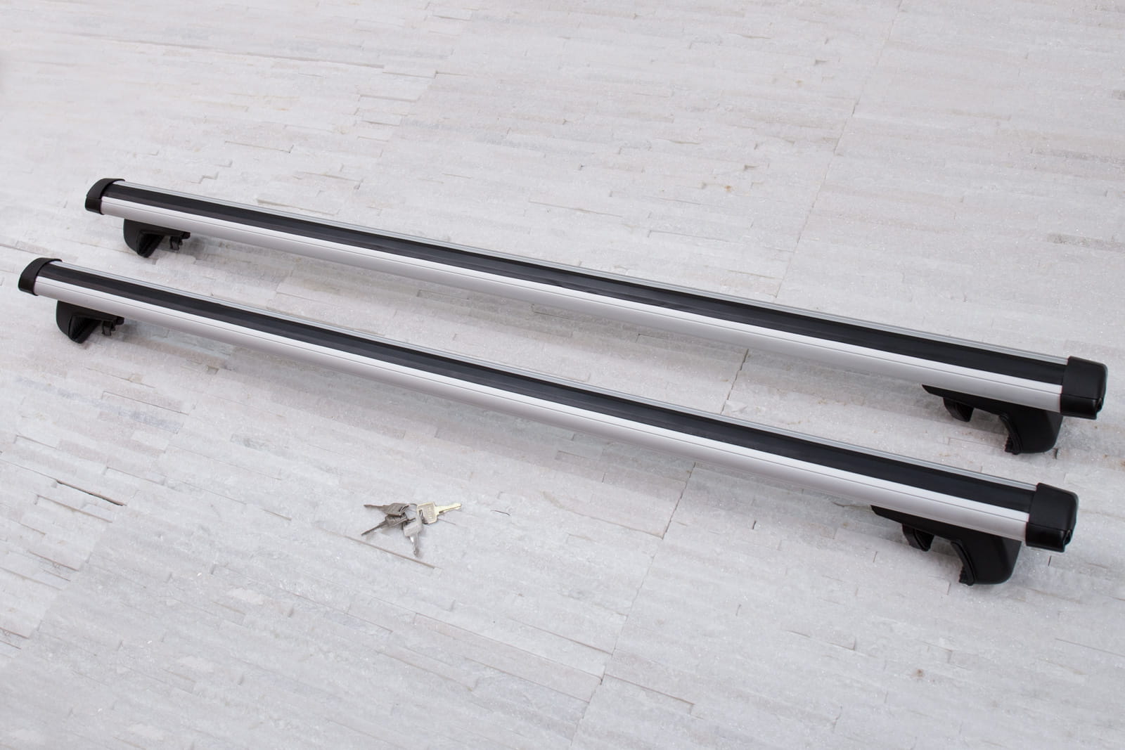 W komplecie znajdują się: dwie belki aluminiowe i cztery zaciski i system zabezpieczenia z kluczykami.