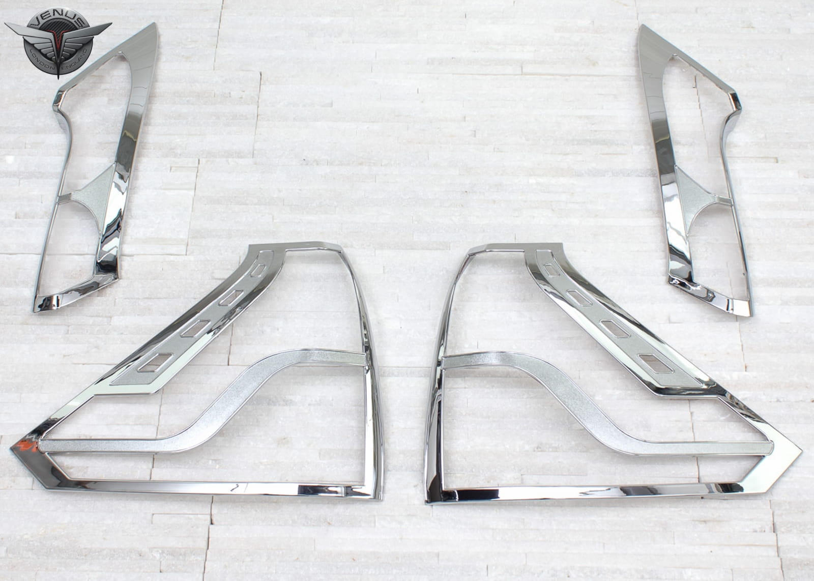 Produkt wykonany jest z wysokiej jakości chromowanego tworzywa ABS. W zestawie znajduje się komplet dwóch nakładek na lampy tylne.