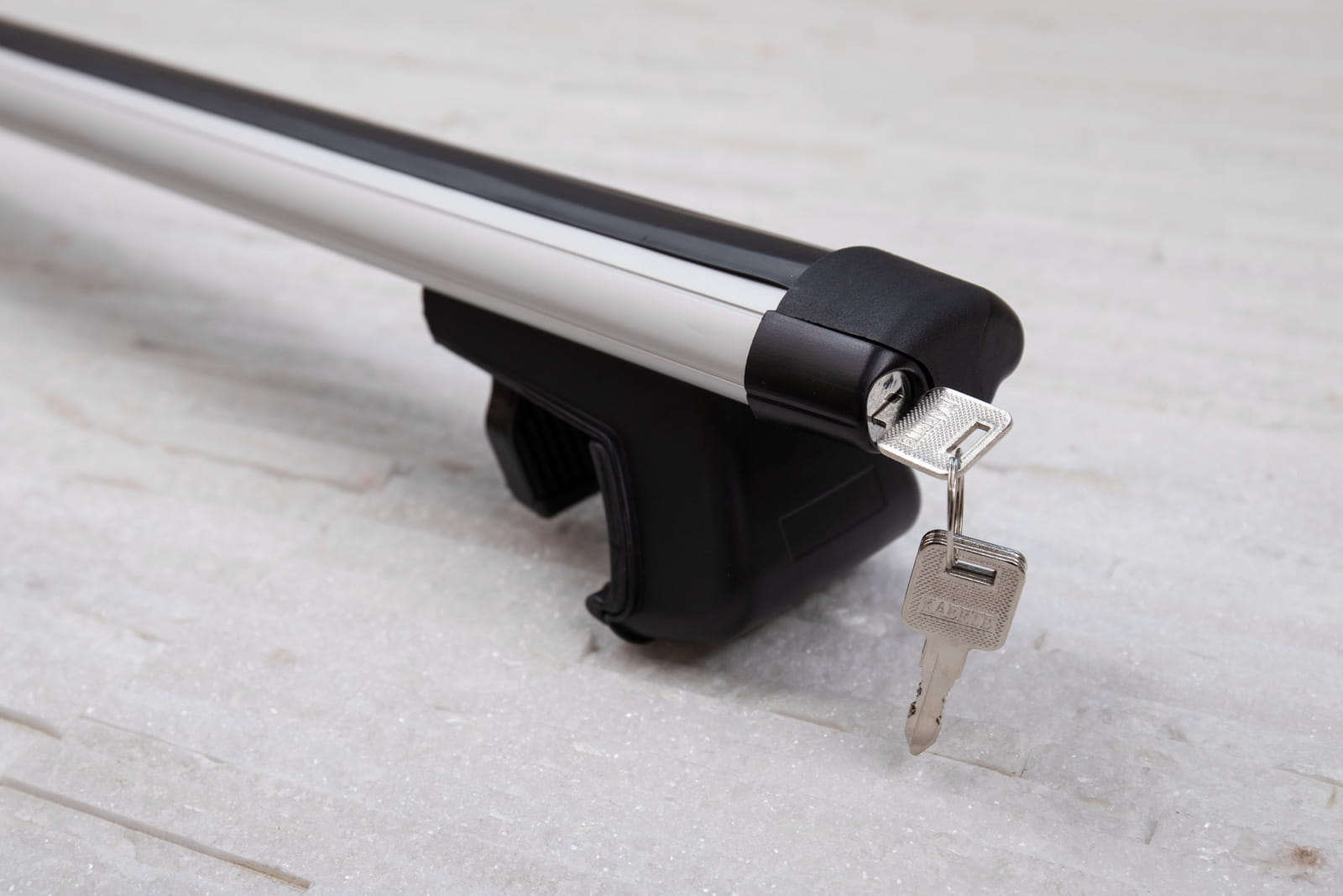 W komplecie znajdują się: dwie belki aluminiowe i cztery zaciski i system zabezpieczenia z kluczykami.