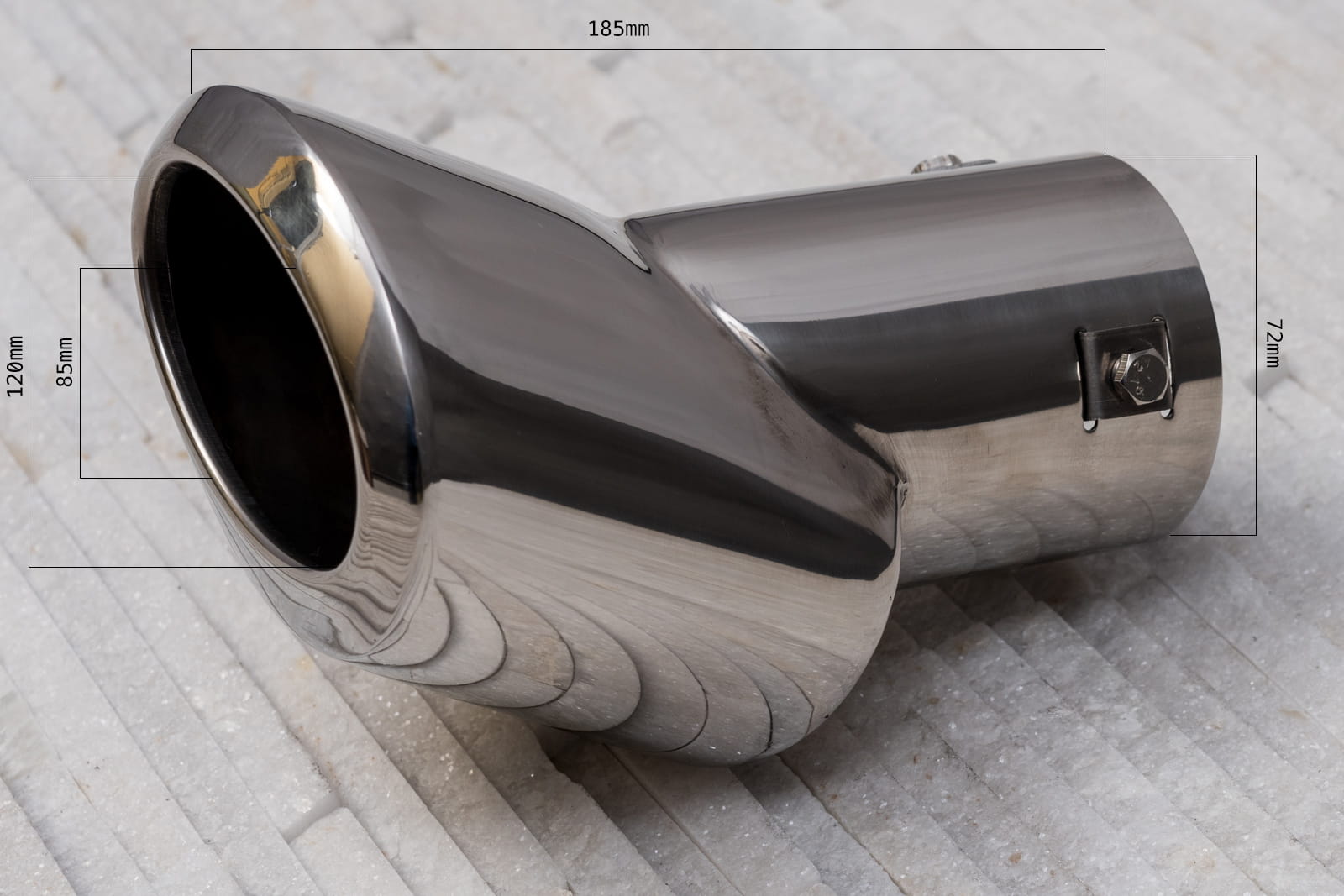 Stalowa końcówka wydechu zaprojektowana została tak, by idealnie podkreślać charakter samochodu, łączący sportową moc z nowoczesną elegancją. Element został wykonany z wysokiej jakości stali nierdzewnej, polerowanej. Produkt cechuje się wysoką odpornością na uszkodzenia spowodowane warunkami atmosferycznymi, działaniem substancji chemicznych itp.