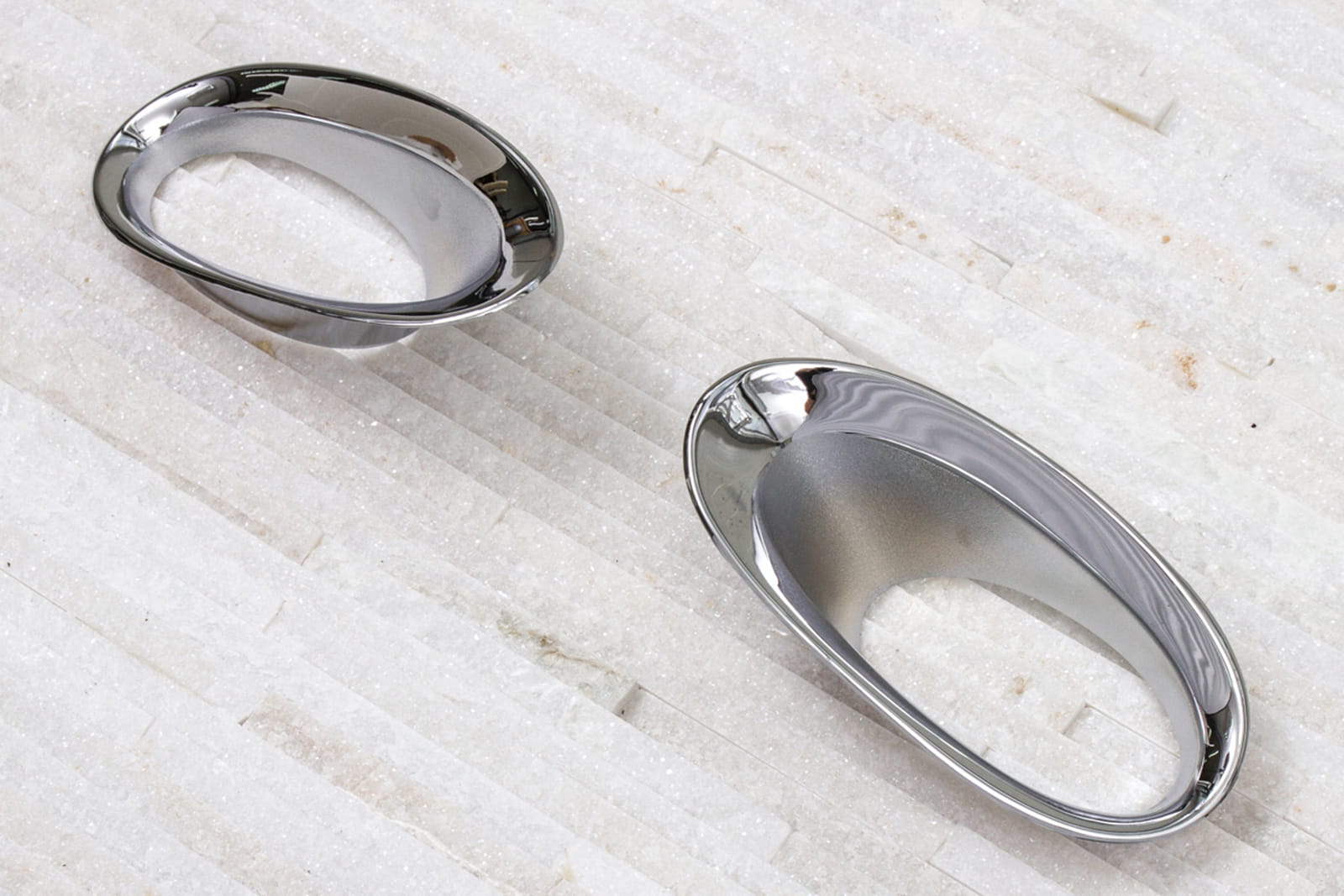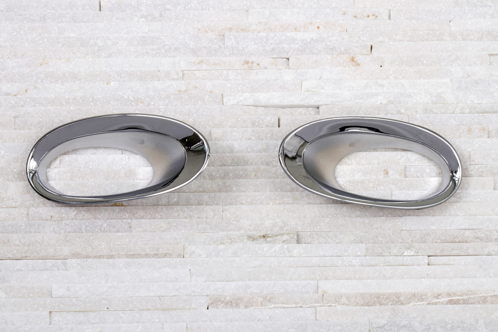 Zestaw zawiera komplet dwóch osłon halogenów. Produkt wykonany z wysokiej jakości chromowanego tworzywa ABS. Montowane są za pomocą taśmy dwustronnie klejącej Scotch 3M, zaaplikowanej na wewnętrznej stronie elementów. Zalecamy montaż profesjonalny.