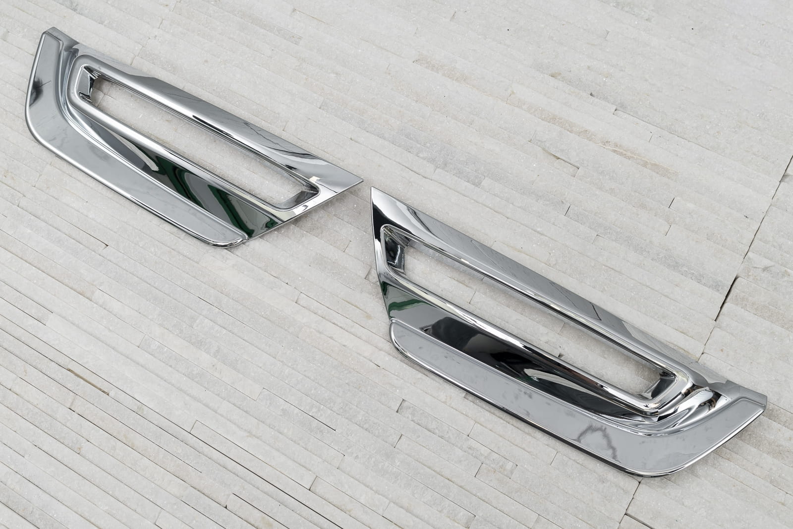 Stylizacyjne nakładki podkreślają charakterystyczną, nowoczesną linię halogenów Hondy CR-V, jednocześnie doskonale komponując się z innymi elementami wykończenia frontu samochodu. Nakładki nie tylko stanowią stylową ramę halogenów, ale także akcentują grill zderzaka, uzupełniając jego ozdobny charakter eleganckim, lustrzanym połyskiem. Produkt wykonany z wysokiej jakości chromowanego tworzywa ABS.