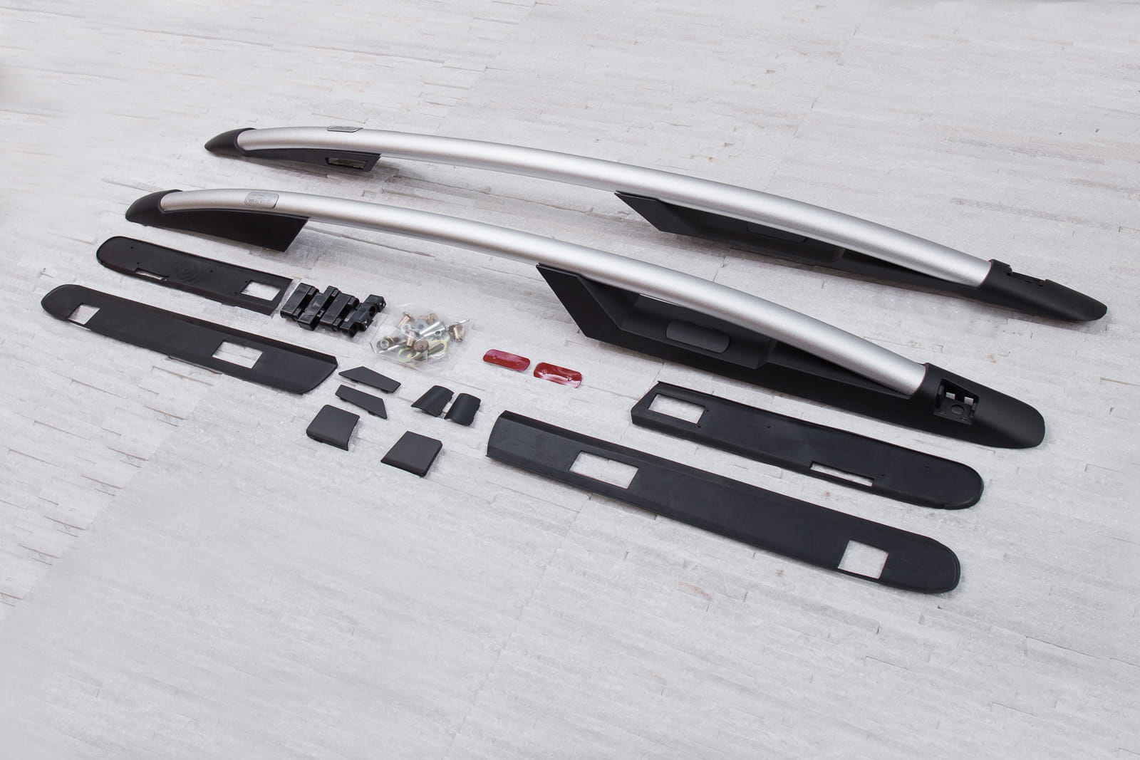 Produkt wykonany z wysokiej jakości aluminium i tworzywa sztucznego ABS. W zestawie znajduje się komplet relingów na stronę lewą i prawą. Relingi montowane w miejsca fabryczne za pomocą dostarczonych mocowań.