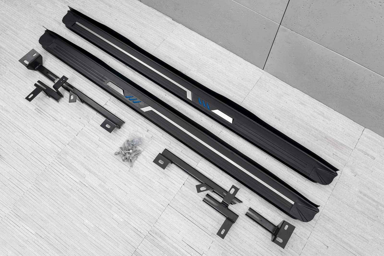 W zestawie komplet stopni bocznych (prawy i lewy), elementy montażowe oraz instrukcja. Progi montowane są na fabrycznych punktach montażowych. Montaż stopni nie wymaga wiercenia dodatkowych otworów! Zalecamy profesjonalny montaż w warsztacie (z doświadczenia wiemy że najlepiej skorzystać z usług zakładu lakierniczego lub blacharskiego ponieważ to te zakłady zajmują się najczęściej montażem listew, dokładek oraz stopni, więc montaż dla tych zakładów jest czynnością intuicyjną).