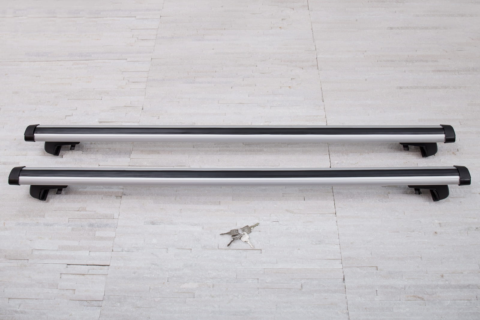 ZALETY Łatwy i bezpieczny montaż. Belki montowane za pomocą elementów montażowych dołączonych do zestawu, gumowe podkładki inimalizują ryzyko zarysowania relingów. W komplecie znajdują się: dwie belki, cztery kluczyki oraz elementy montażowe. Belki posiadają mocowania regulowane w zakresie od 110 do 126 cm, dzięki czemu z łatwością można je idealnie dopasować do rozstawu relingów zamontowanych na samochodzie. Wymiary belki: długość: 135 cm szerokość: 5,5 cm