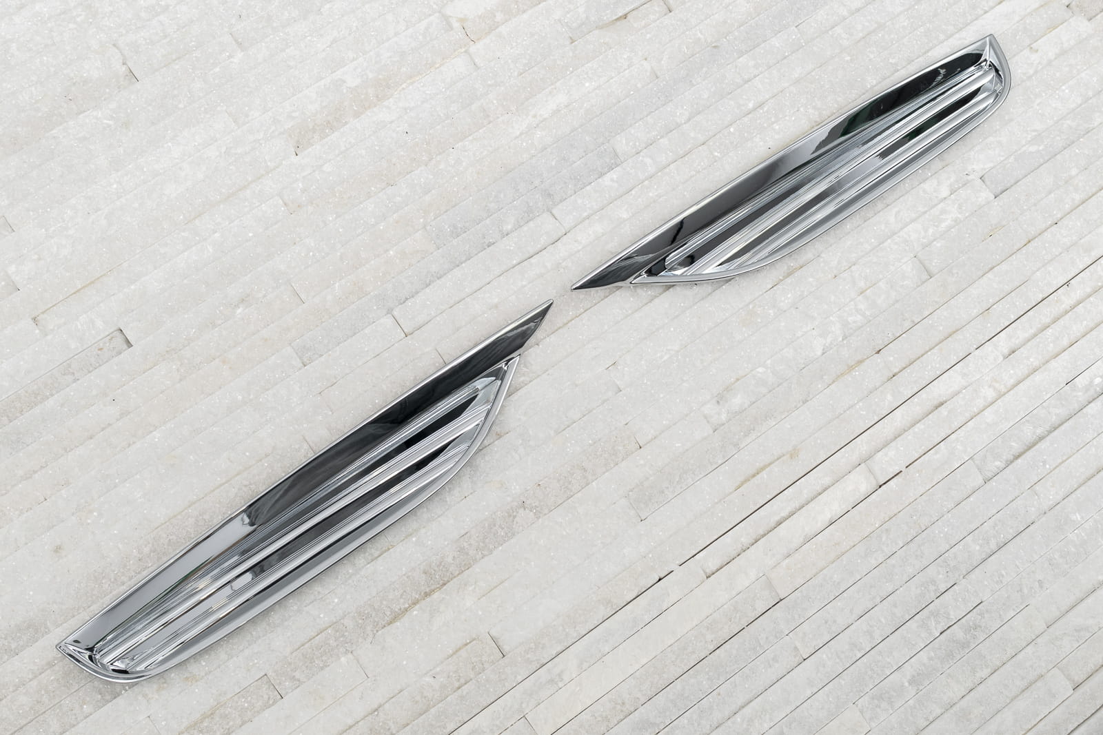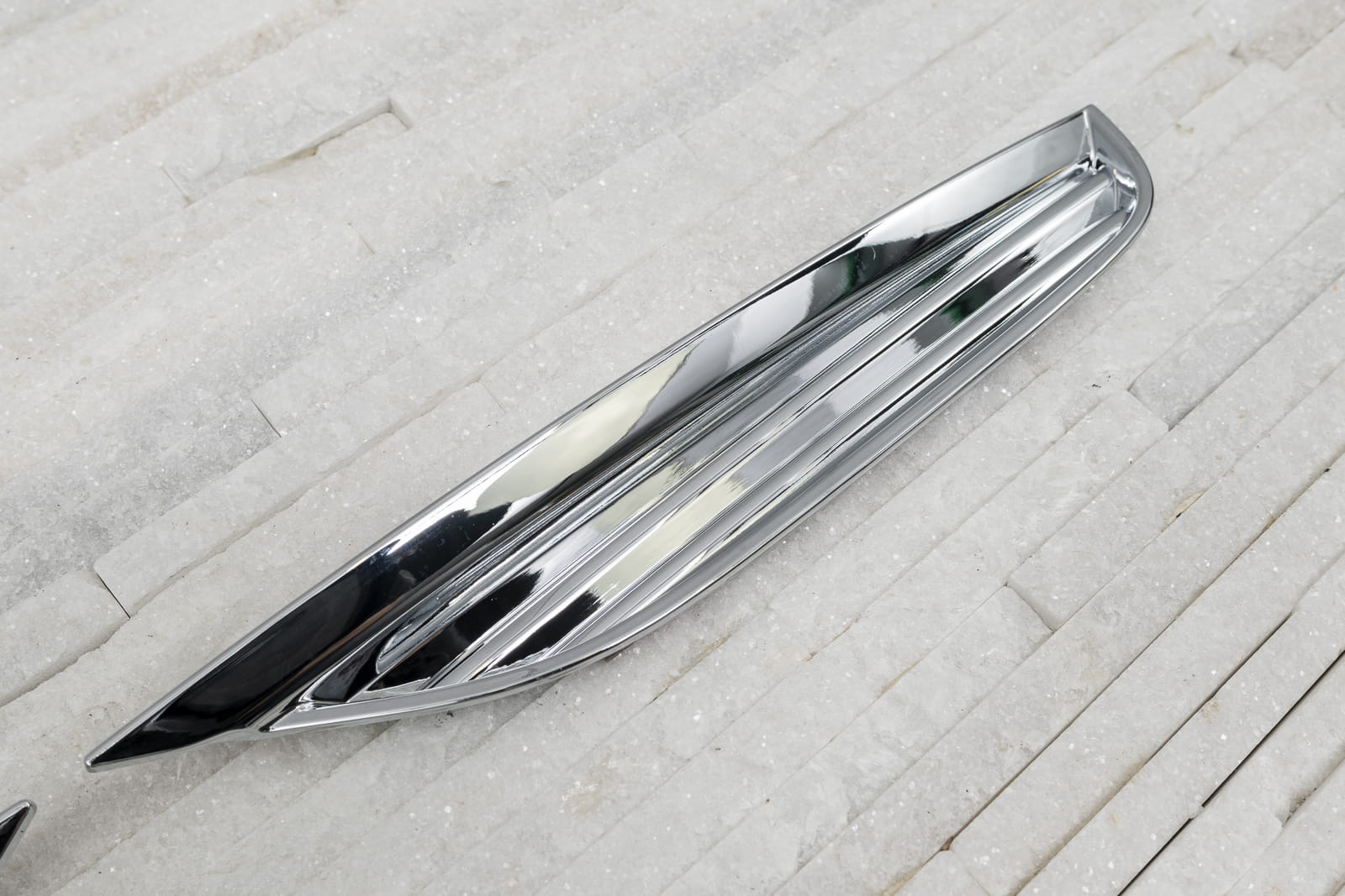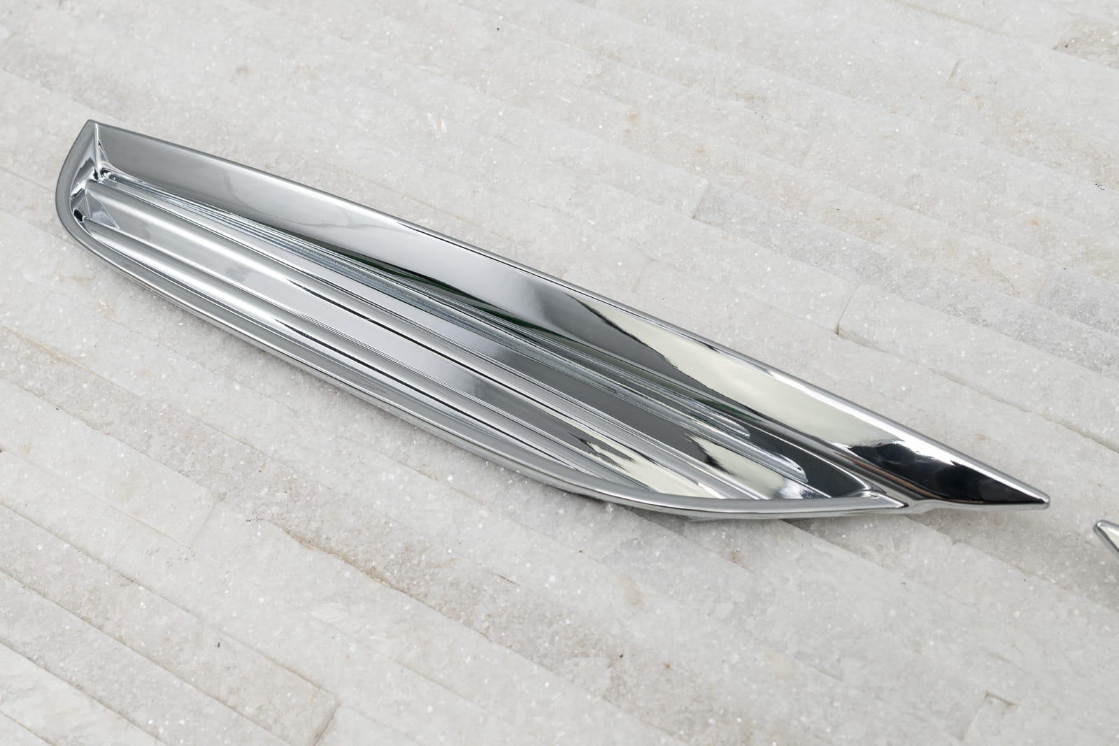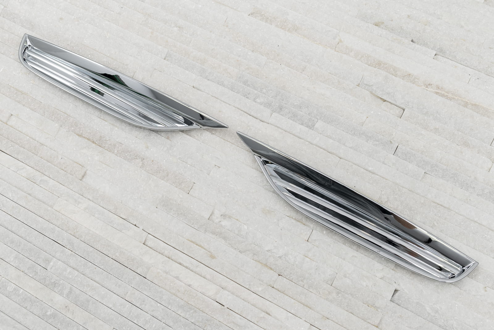| Chromowane zaślepki tylnych świateł przeciwmgielnych, zaprojektowane dla HONDY JAZZ IV 2017-2020 (po faceliftingu). Stylizacyjne zaślepki tylnych halogenów, dzięki zestawieniu lustrzanego połysku chromowanej powierzchni z dynamiczną, ostrą linią nakładek sprawia, że tylny zderzak zyskuje stylową ramę, doskonale pasującą do nowoczesnego stylu Hondy Jazz IV. Listwy znakomicie komponują się z innymi elementami wykończenia samochodu, dzięki czemu ich zastosowanie pozwala uzyskać spójną, wyróżniającą samochód stylizację. Zestaw zawiera komplet dwóch zaślepek na halogeny. Produkt wykonany z wysokiej jakości chromowanego tworzywa ABS. Montowane są za pomocą taśmy dwustronnie klejącej Scotch 3M, zaaplikowanej na wewnętrznej stronie elementów. Zalecamy montaż profesjonalny. Produkt fabrycznie nowy, oryginalnie zapakowany. Zachęcamy do zakupów! |