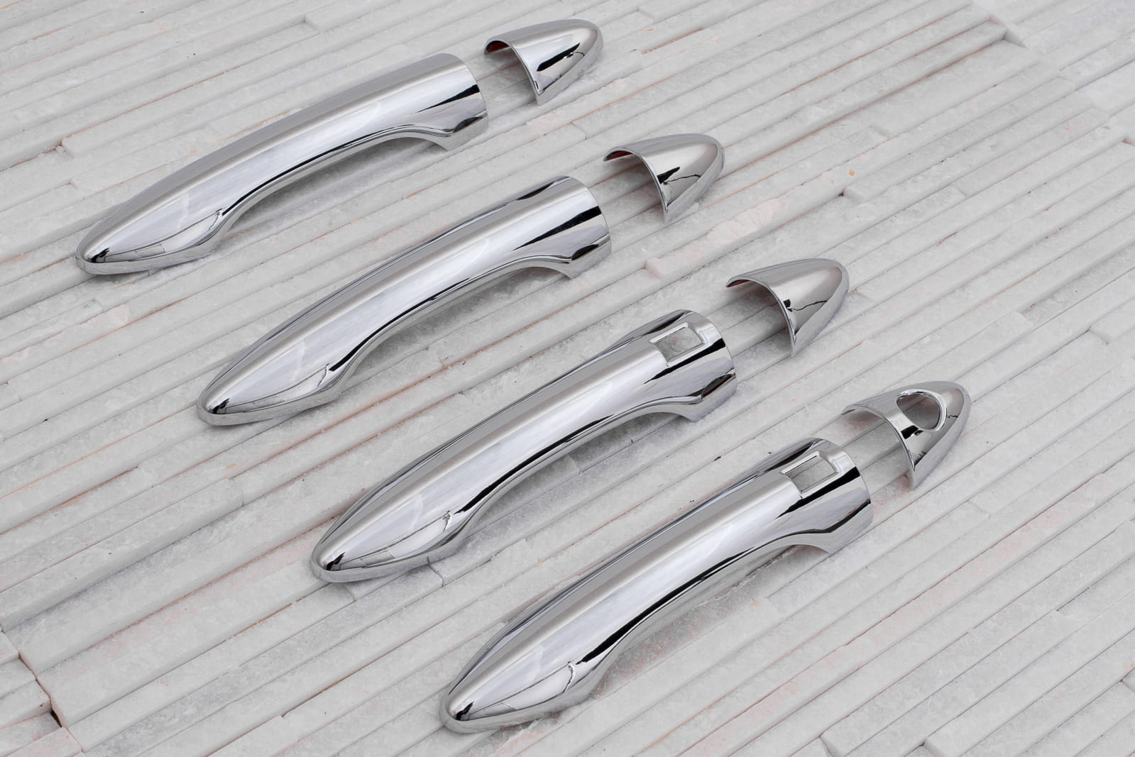 | Chromowane nakładki na klamki zaprojektowane dla HYUNDAI iX35 2010-2015 (wersja z sensorem). Dekoracyjne, chromowane nakładki na klamki to dodatek, który uzupełnia stylizację samochodu nutą sportowej elegancji. Idealnie dopasowane do linii samochodu, podkreślają charakterystyczny kształt klamek modelu iX35, czyniąc z nich prawdziwą ozdobę samochodu. Produkt wykonany z wysokiej jakości chromowanego tworzywa ABS. Zestaw zawiera komplet czterech nakładek na klamki, posiadają otwór pod sensor. Montowane są za pomocą taśmy dwustronnie klejącej Scotch 3M, zaaplikowanej na wewnętrznej stronie elementów. Nakłada się je na powierzchnię odtłuszczoną przy pomocy benzyny ekstrakcyjnej lub spirytusu, w temperaturach dodatnich od 18 st.C. Zalecamy montaż profesjonalny. Produkt fabrycznie nowy, oryginalnie zapakowany. Zachęcamy do zakupów! |