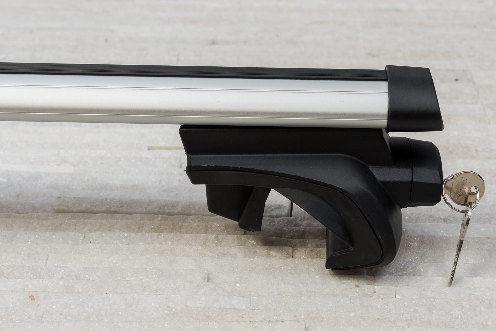 W komplecie znajdują się: dwie belki aluminiowe i cztery zaciski i system zabezpieczenia z kluczykami.