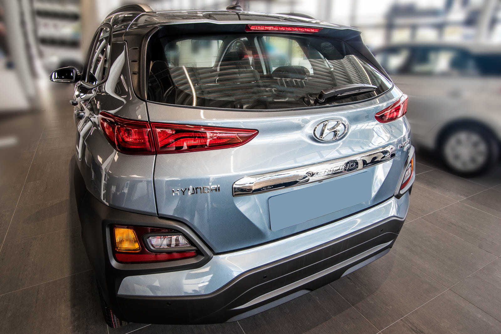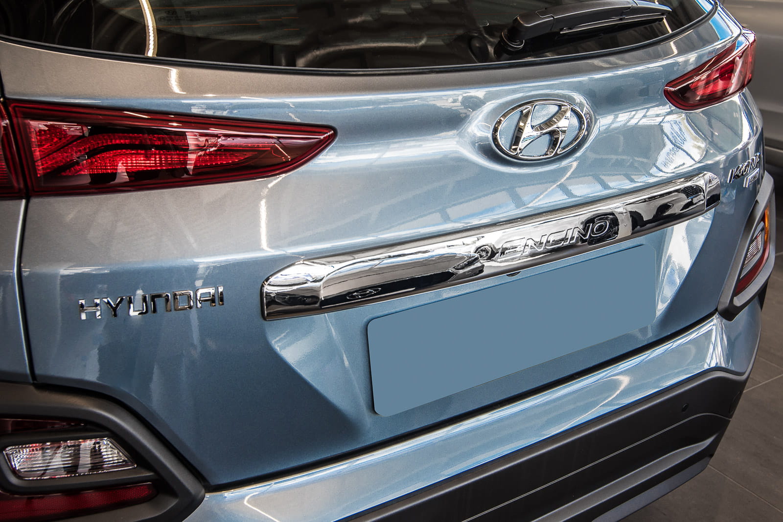 Dekoracyjna, chromowana listwa to element wprowadzający do stylizacji Kony nutę sportowej elegancji. Akcentuje kształt klapy bagażnika, uzupełnia przestrzeń nad tablicą rejestracyjną, podkreślając jednocześnie emblemat z logo HYUNDAI znajdujący się nad listwą.