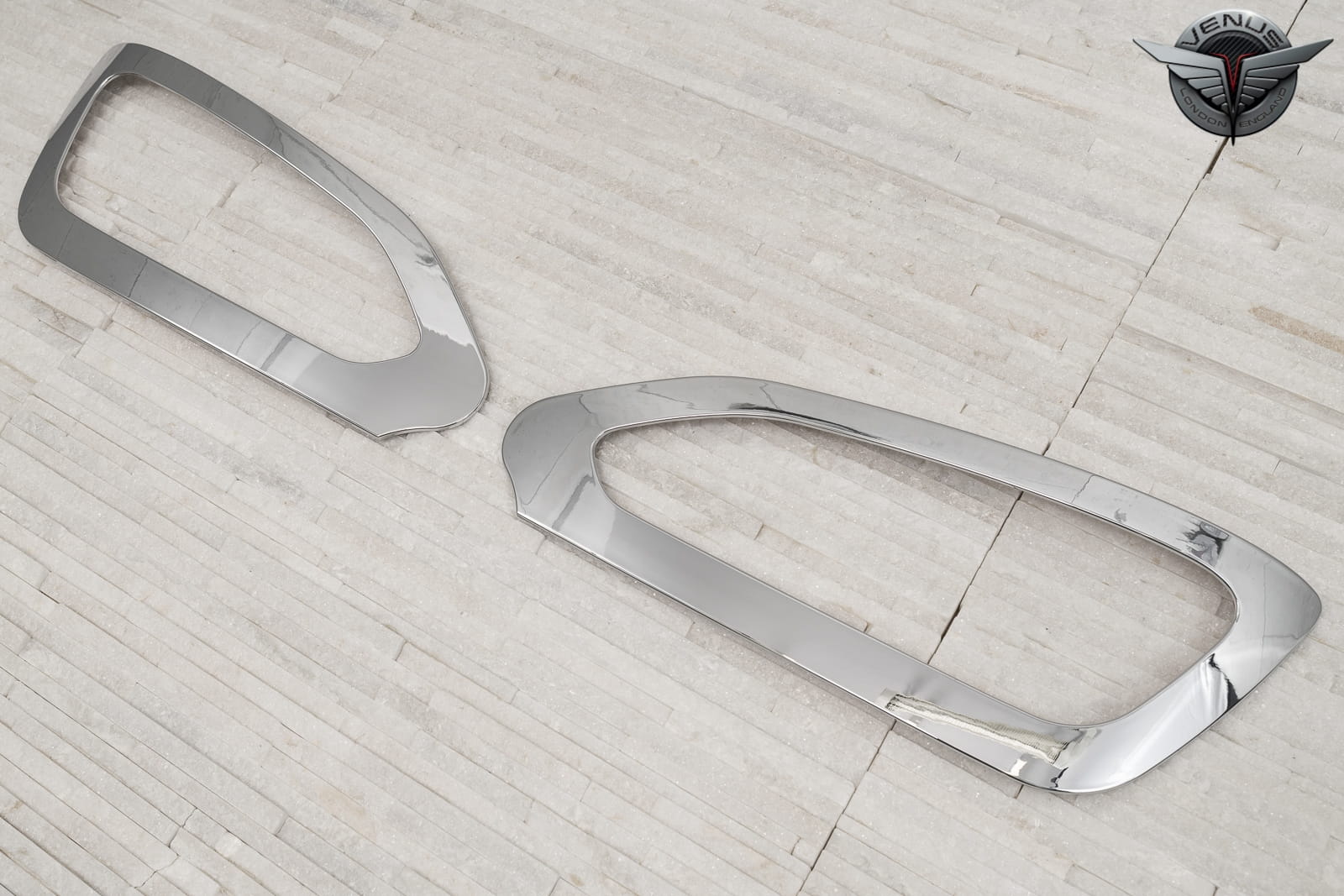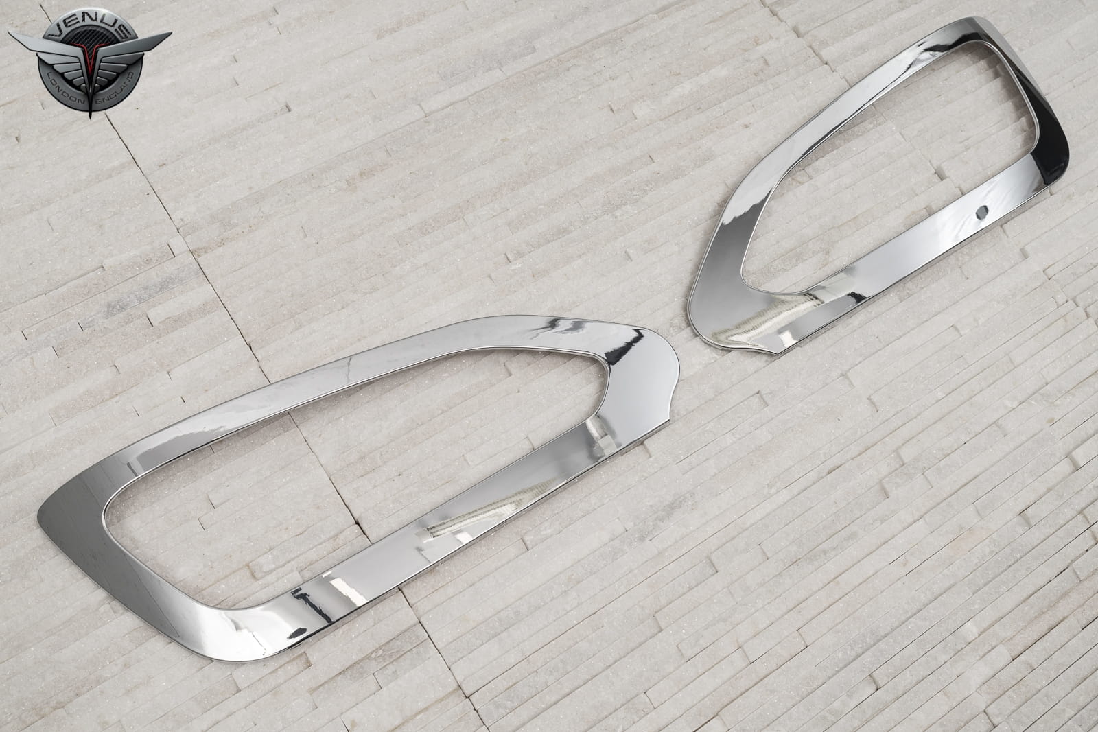 Stylizacyjne osłony podkreślają typową dla modelu Santa FE dynamiczną linię lamp. Dzięki wysokiemu połyskowi chromowanej powierzchni nakładek, przednie halogeny zyskują przyciągającą wzrok ramę, uzupełniającą stylizację samochodu nutą sportowej elegancji. Produkt wykonany z wysokiej jakości chromowanego tworzywa ABS.