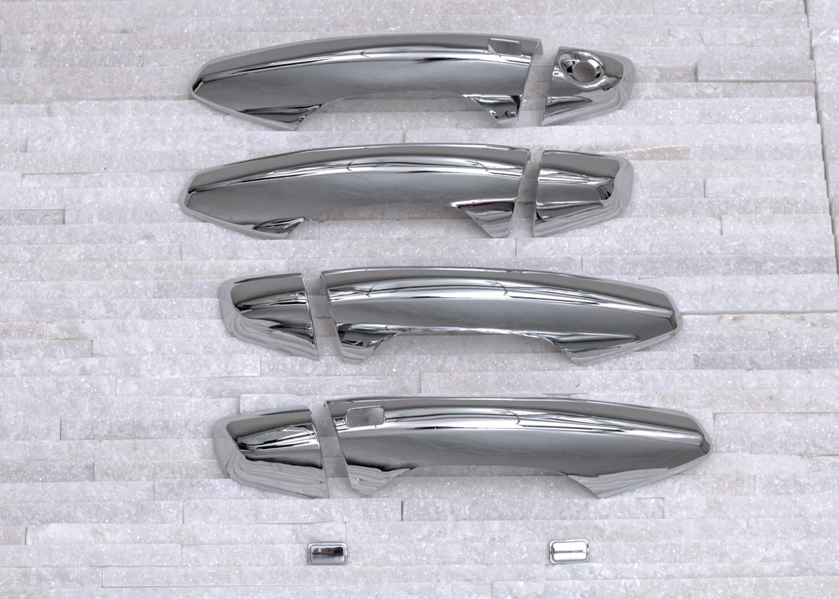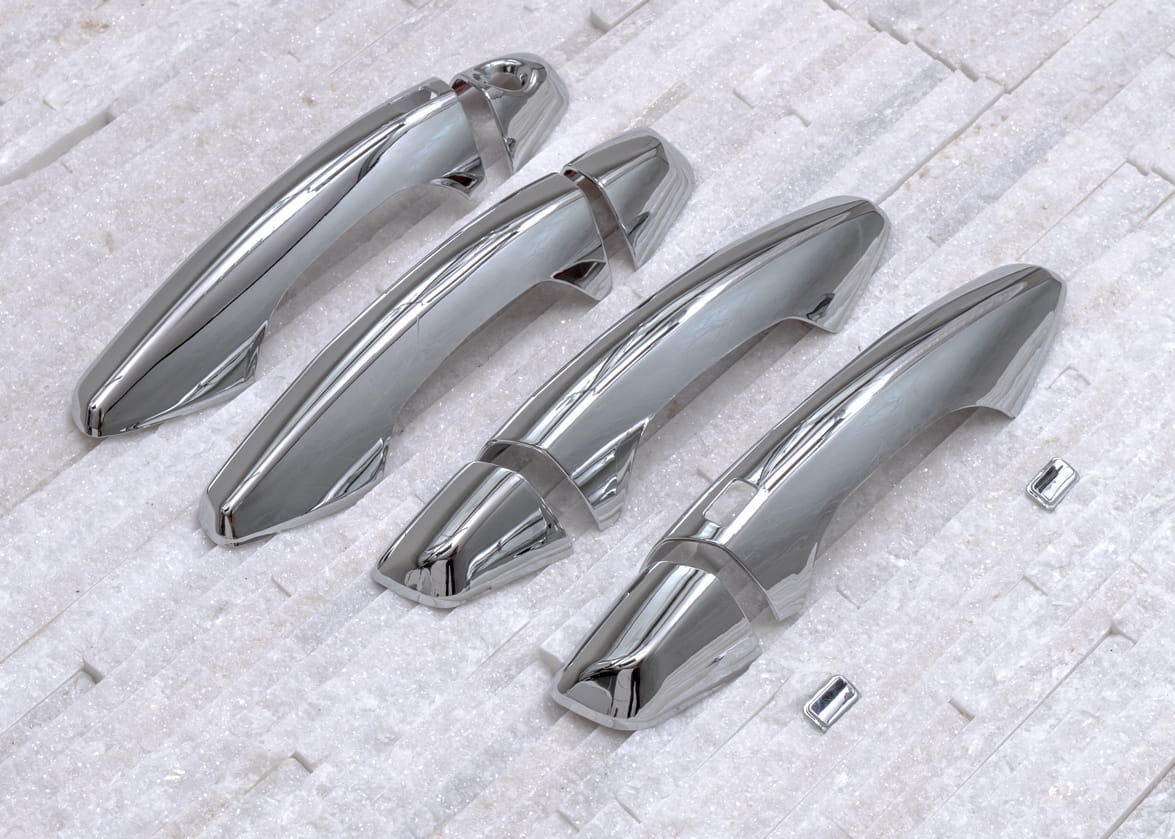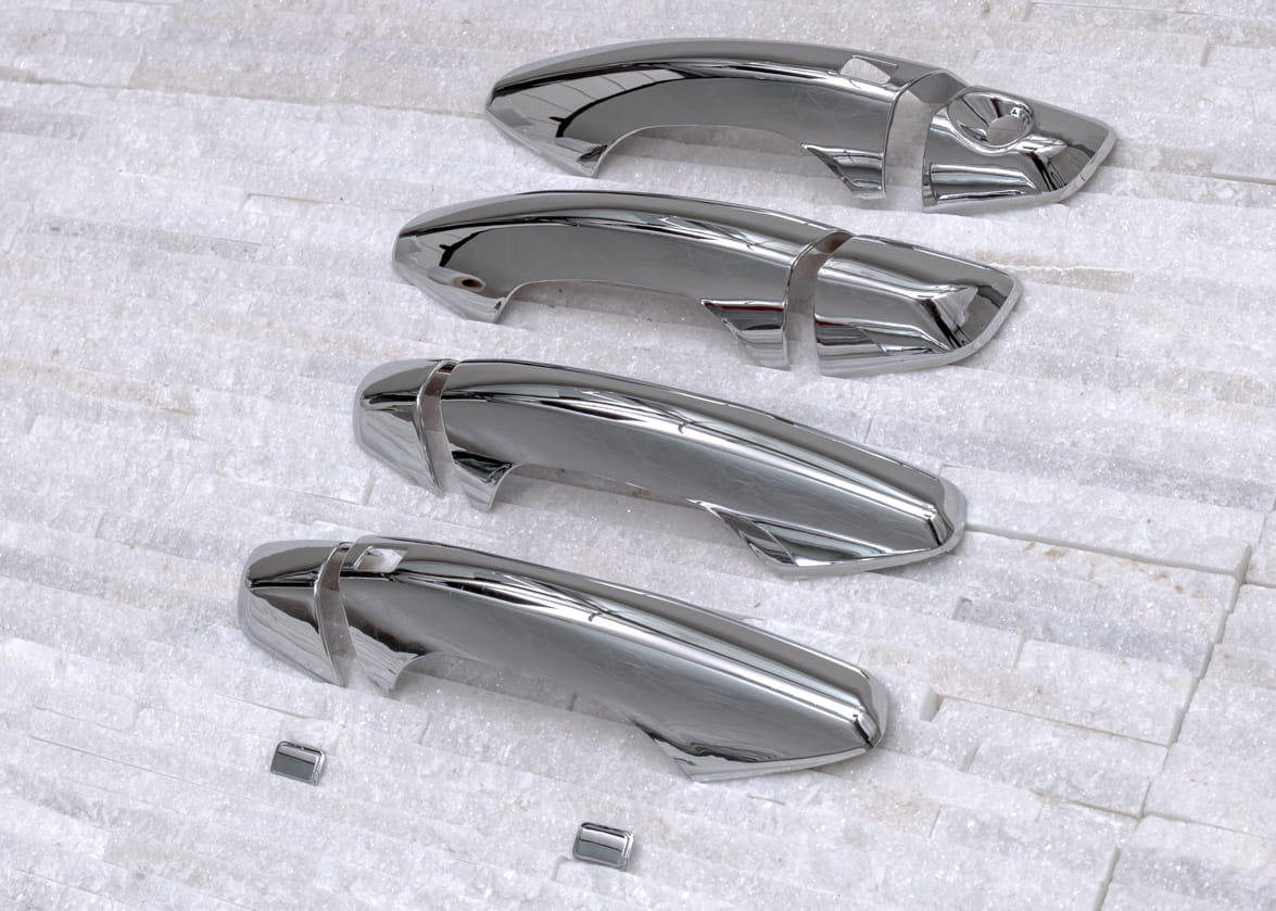 Dekoracyjne, chromowane nakładki na klamki to dodatek, który uzupełnia stylizację samochodu nutą sportowej elegancji. Idealnie dopasowane do linii samochodu, odmieniają wizerunek klamek modelu SANTA FE, czyniąc z nich prawdziwą ozdobę samochodu. Produkt wykonany z wysokiej jakości chromowanego tworzywa ABS.