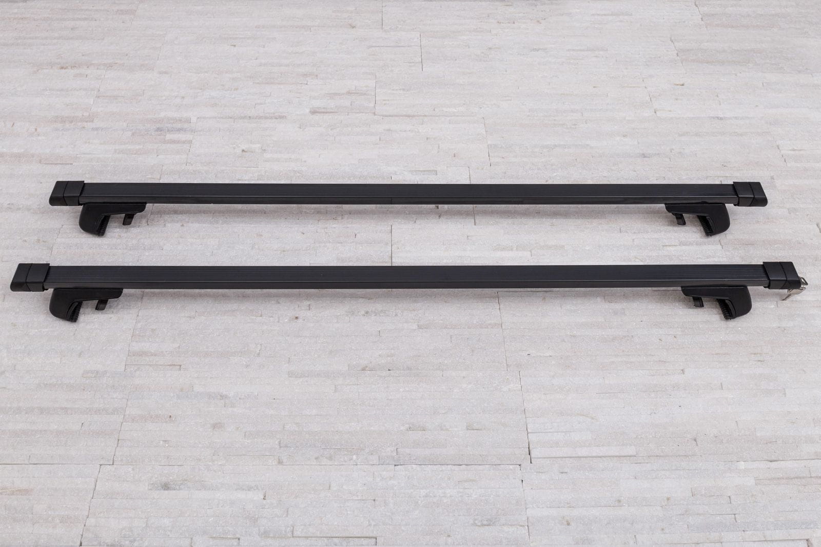 W komplecie znajdują się: dwie belki stalowe i cztery zaciski i system zabezpieczenia z kluczykami.
