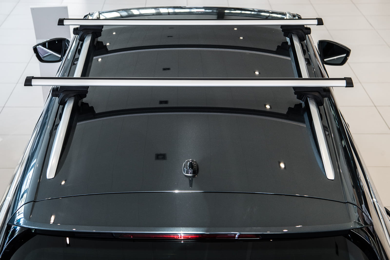 W komplecie znajdują się: dwie belki aluminiowe i cztery zaciski i system zabezpieczenia z kluczykami.