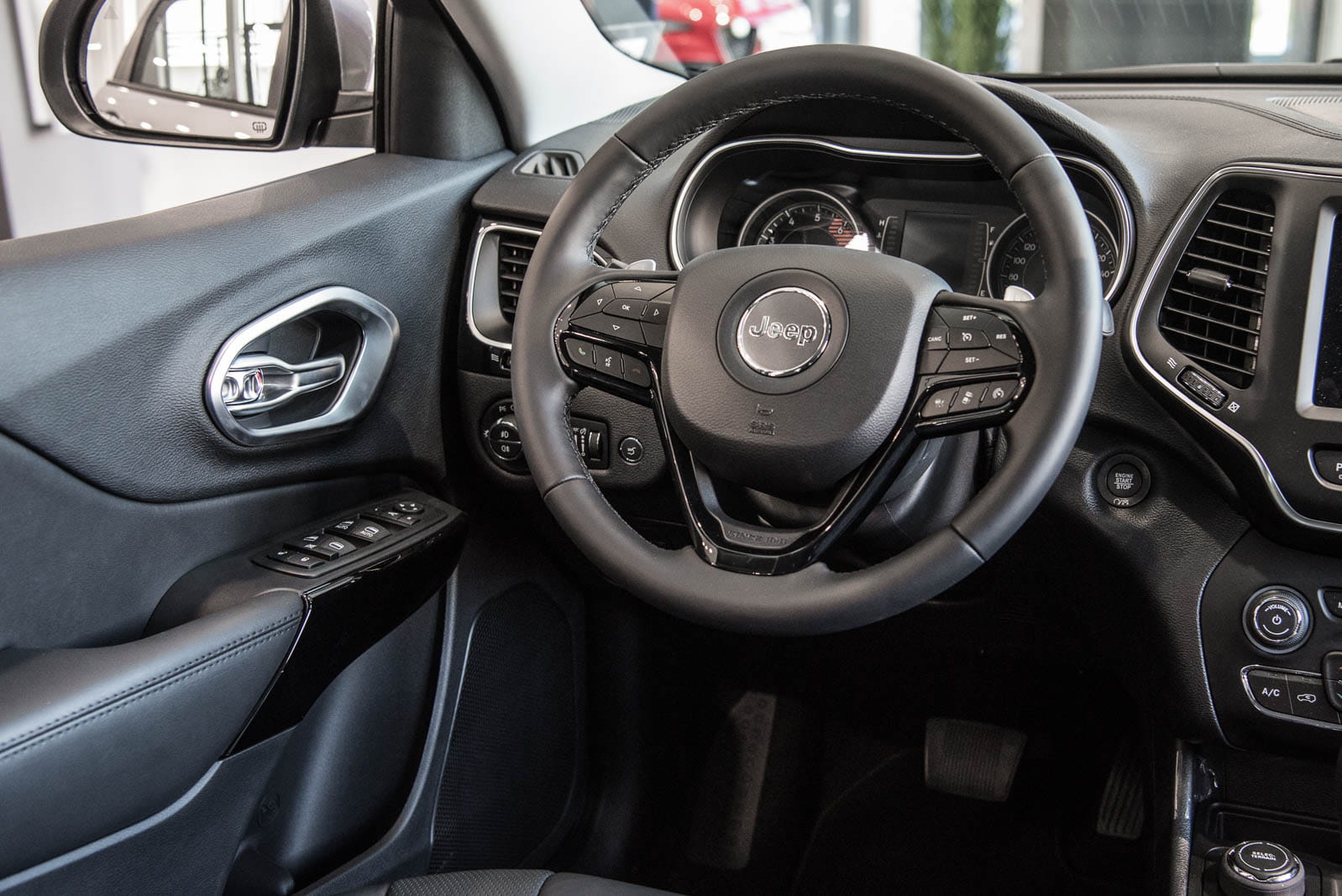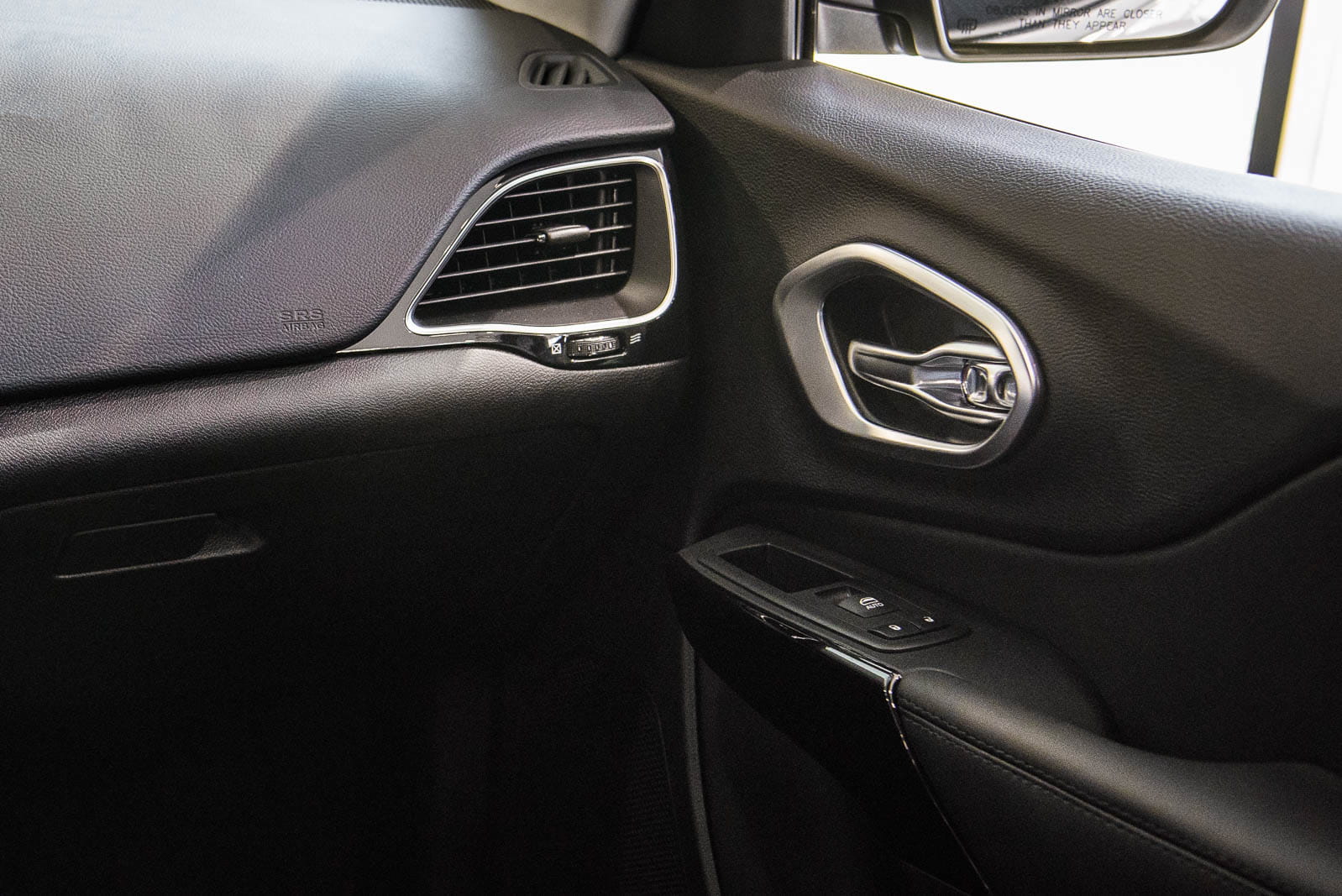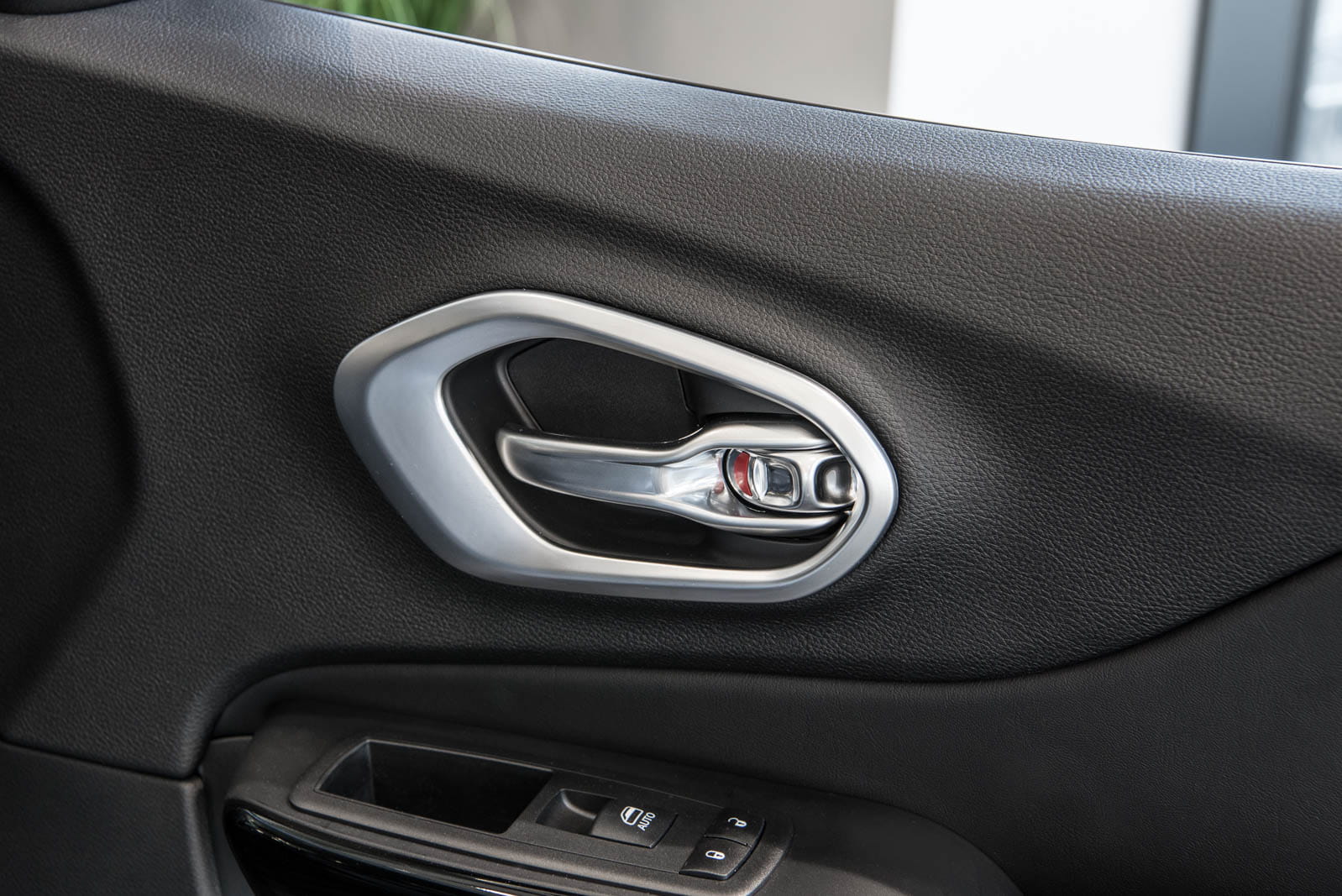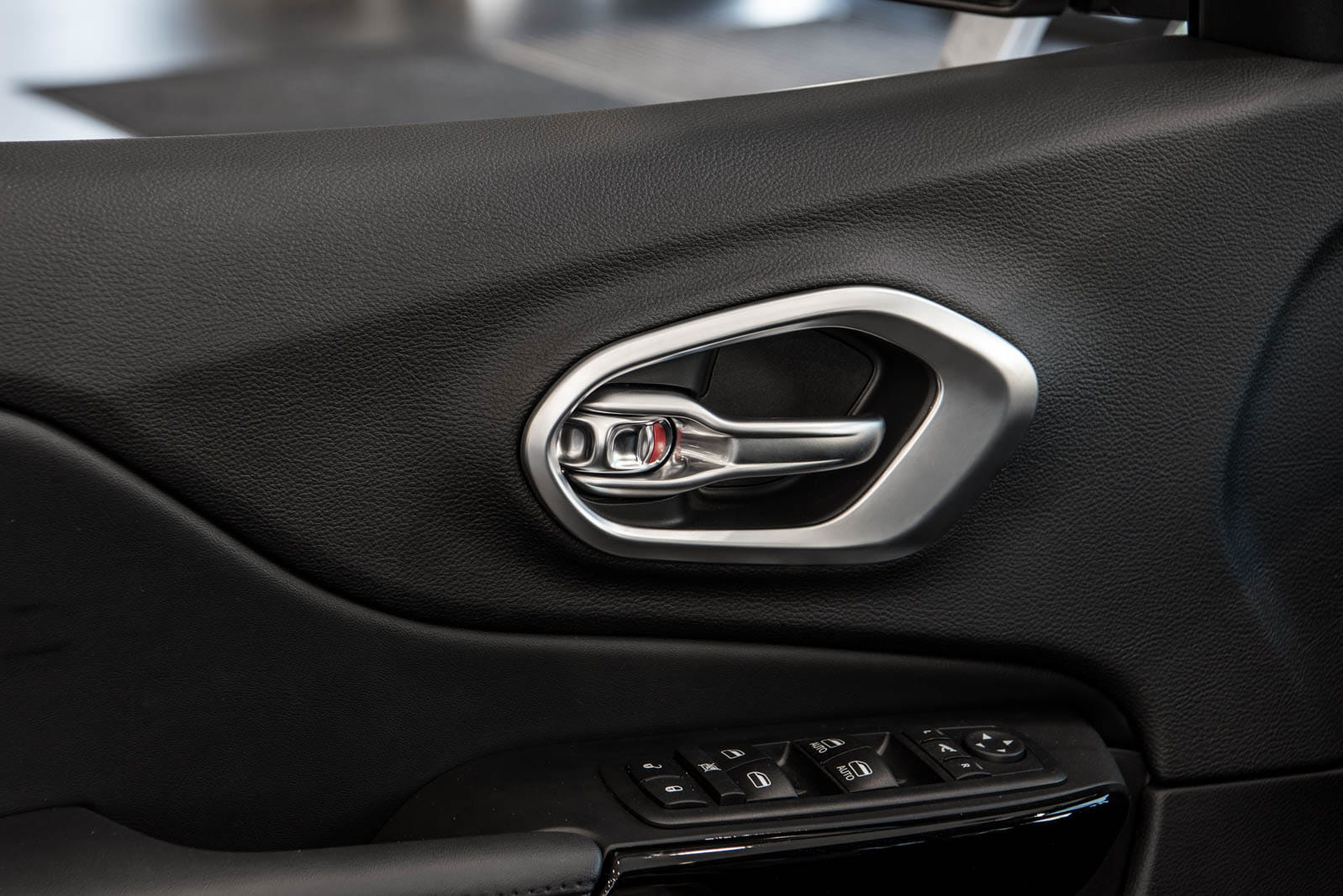 Ozdobne nakładki nadają wewnętrznym klamkom stylową ramę, czyniąc z nich prawdziwą ozdobę wnętrza modelu CHEROKEE. Zestawienie subtelnego połysku chromu z satynową strukturą powierzchni sprawia, że nakładki doskonale komponują się z innymi elementami zdobiącymi wnętrze samochodu.
