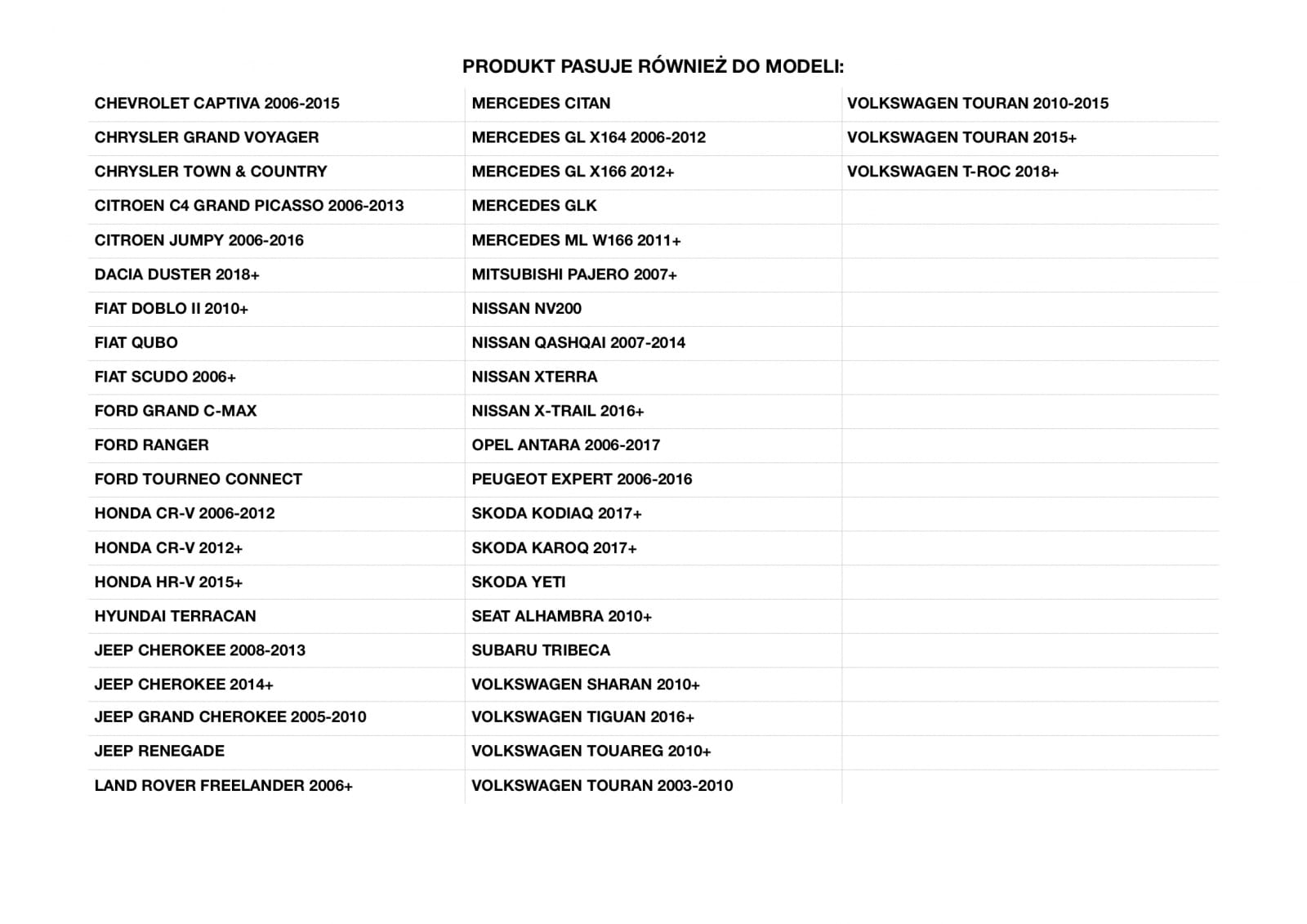 W komplecie znajdują się: dwie belki aluminiowe i cztery zaciski i system zabezpieczenia z kluczykami.