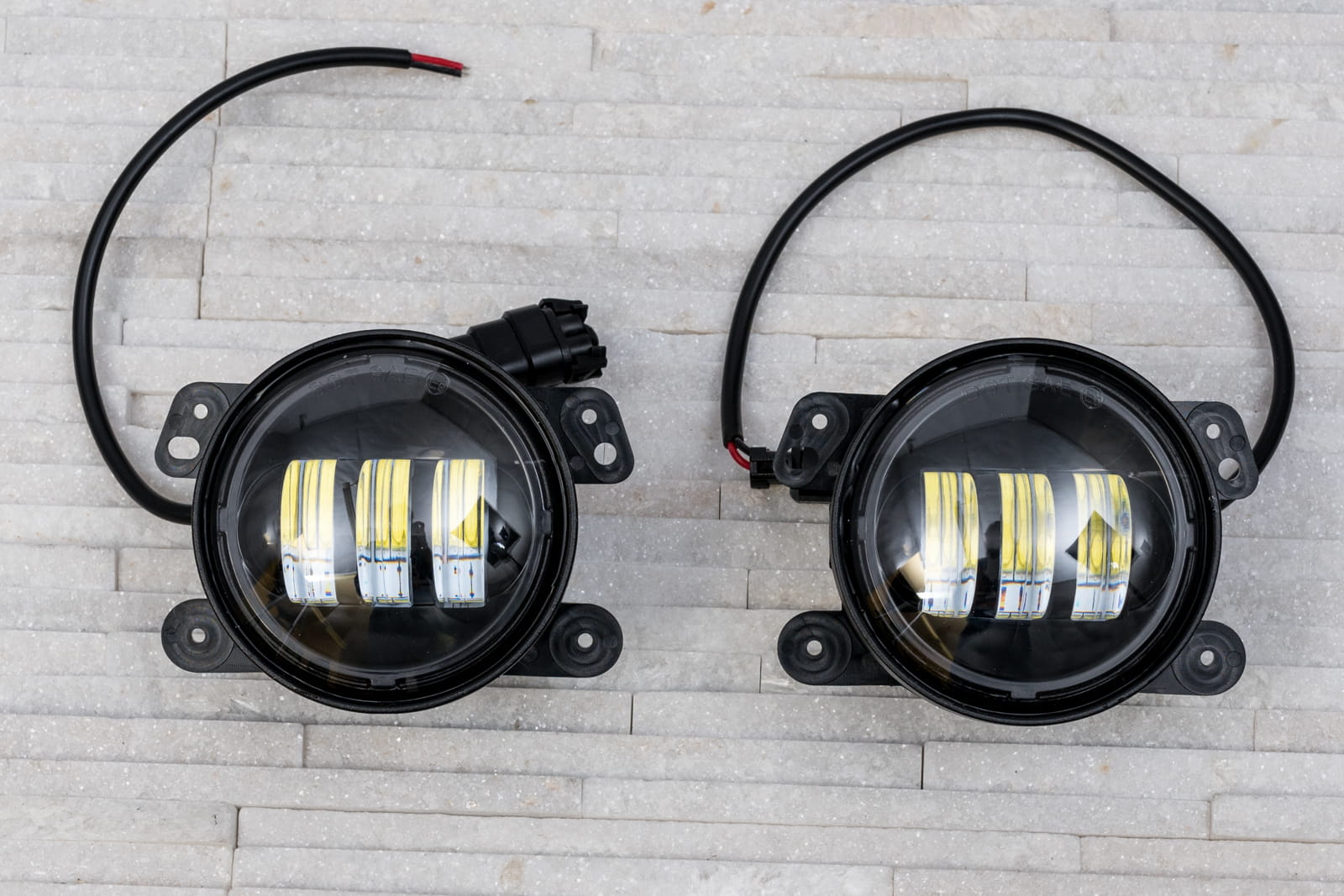 Lampy LED w stalowej, wytrzymałej obudowie, montowane są w fabrycznie przystosowane miejsca. Jeśli samochód wyposażony jest w fabrycznie w halogeny, wówczas lampy LED pełnią funkcję elementów wymiennych (montowanych w miejsce halogenów). W przypadku braku fabrycznych halogenów, światła montuje się w oryginalne miejsca kratek przedniego zderzaka.