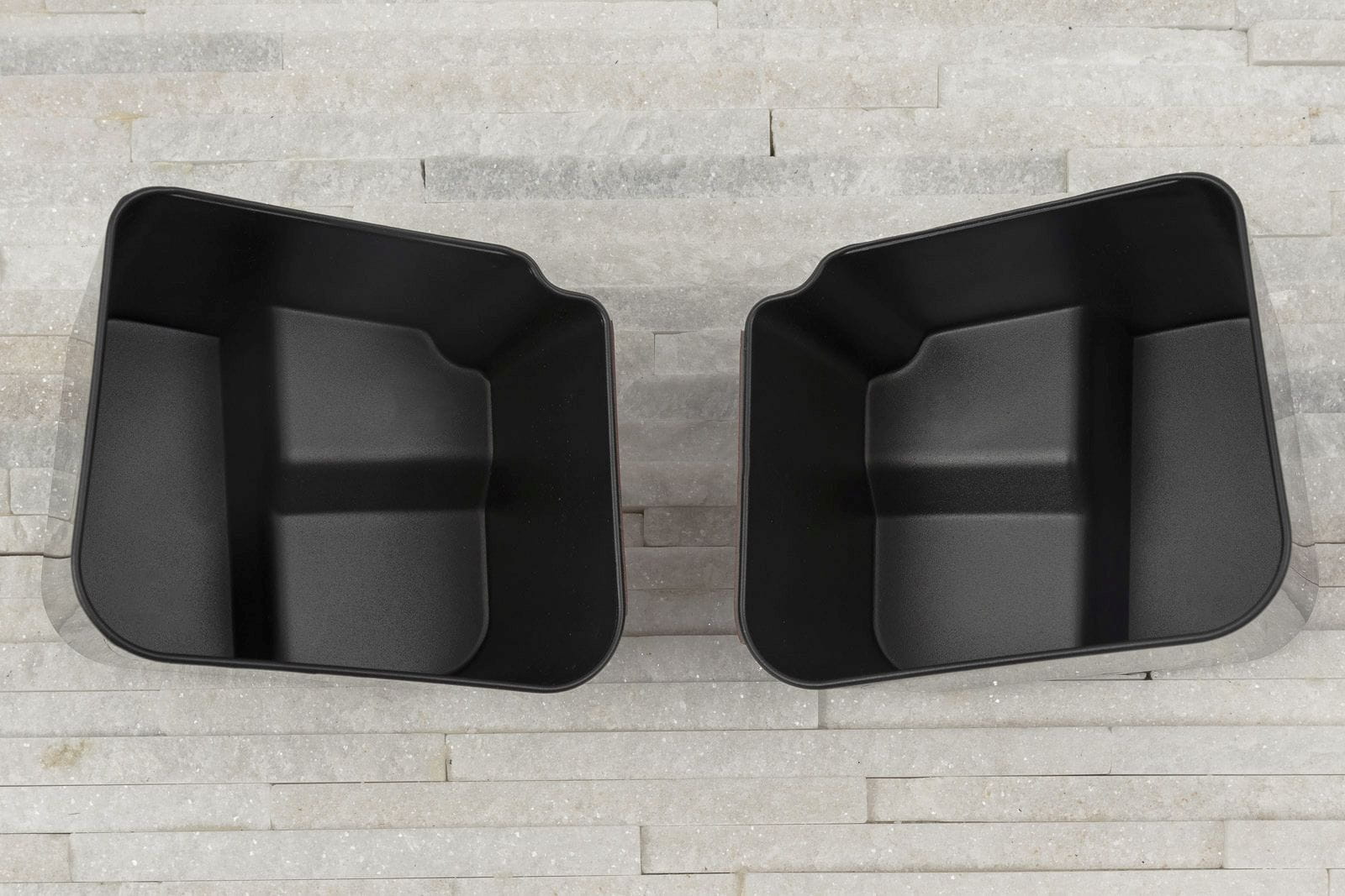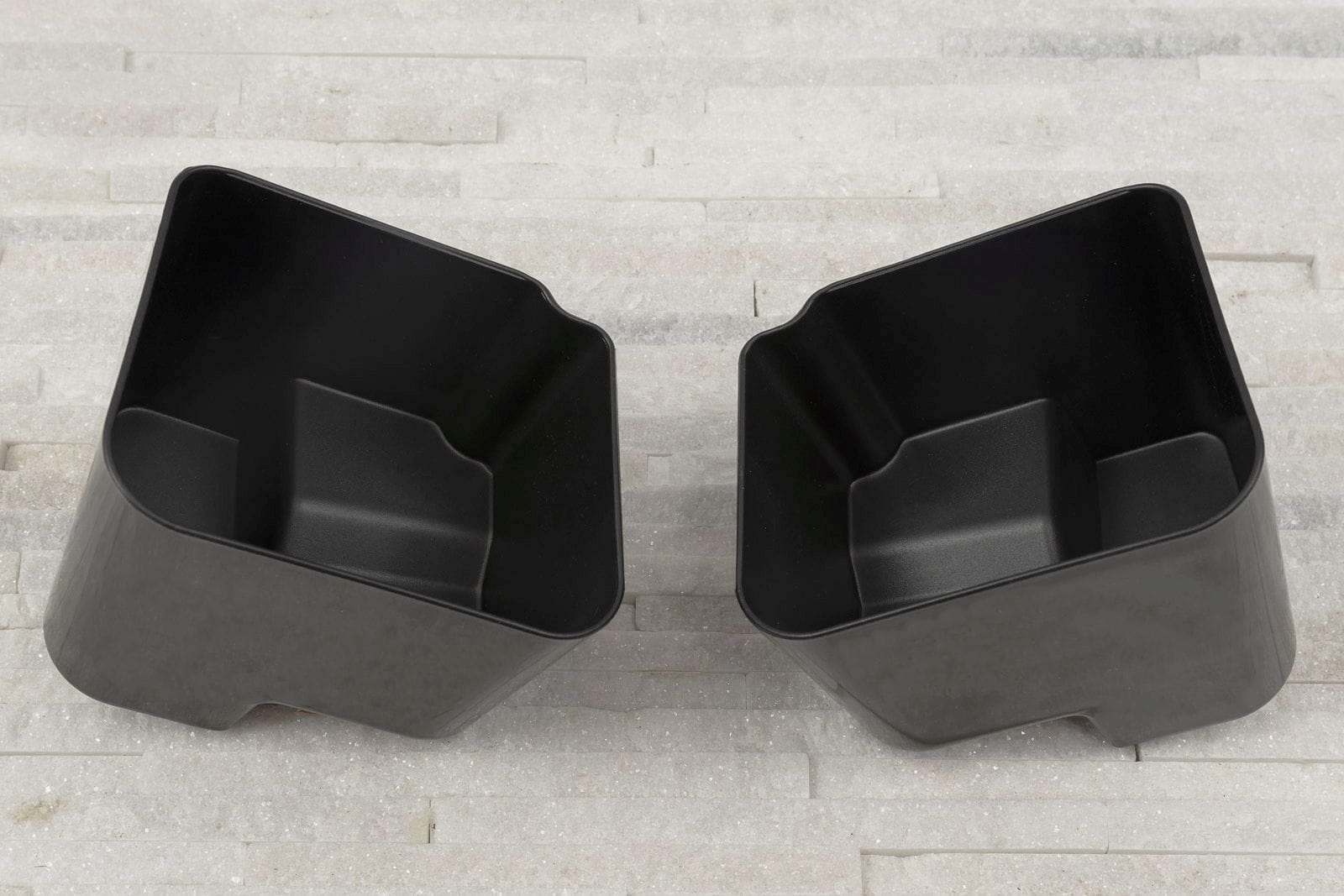 Organizery, boxy tylnego siedzenia, dedykowane do modelu JEEP WRANGLER JL 2018+. Specjalne boxy pozwalają stworzyć dodatkowe schowki do przechowywania niezbędnych akcesoriów. Dzięki nim będziemy mieli łatwy dostęp do naszego telefonu, kluczyków, czy portfela. Produkt wykonany z wysokiej jakości tworzywa ABS w kolorze czarnym. Montowane na słupki środkowe, za pomocą taśmy dwustronnie klejącej Scotch 3M, zaaplikowanej na wewnętrznej stronie elementów. W zestawie znajdują się dwa organizery na prawą i lewą stronę. Produkt fabrycznie nowy, oryginalnie zapakowany. Zalecamy montaż profesjonalny.